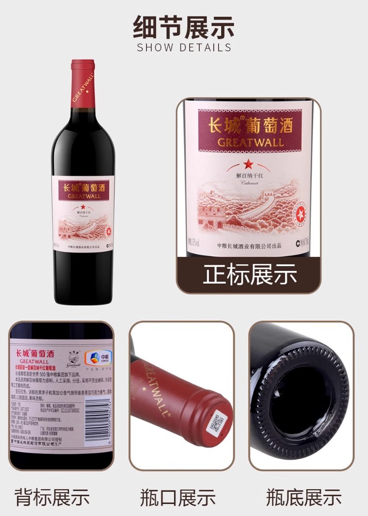 长城一星干红葡萄酒13度 整箱750ml*6瓶(裸瓶)