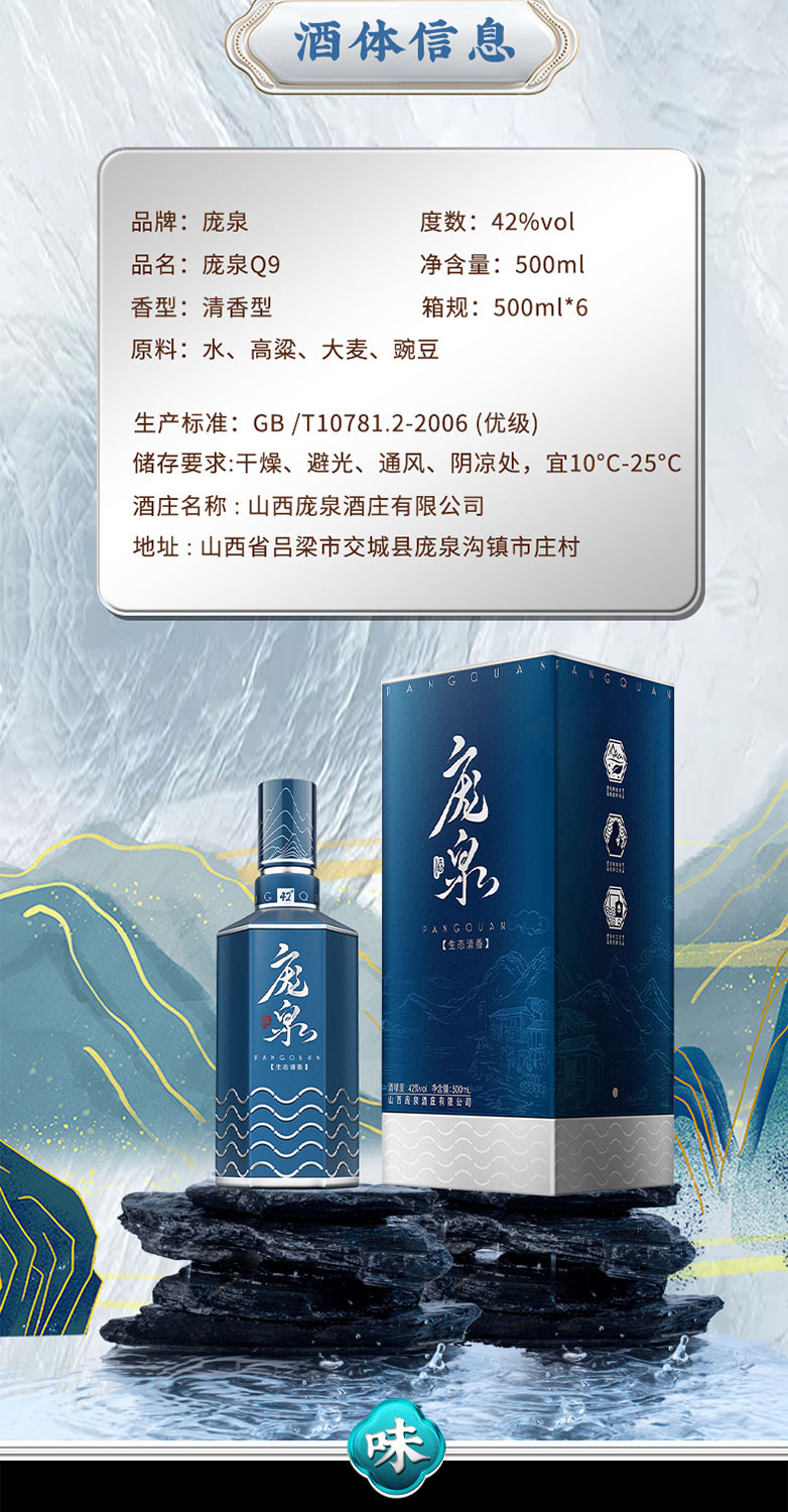 庞泉Q9清香型白酒42度500ml*6纯粮食酒大曲酒山西老酒高粱酒整箱