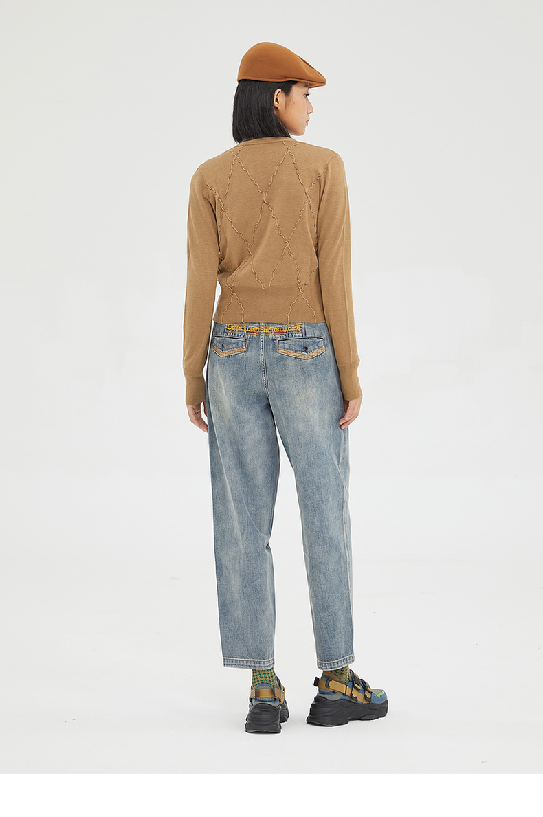 谜底2022冬季新品短款针织开衫女复古合体艺术卷边外套229MZ6201