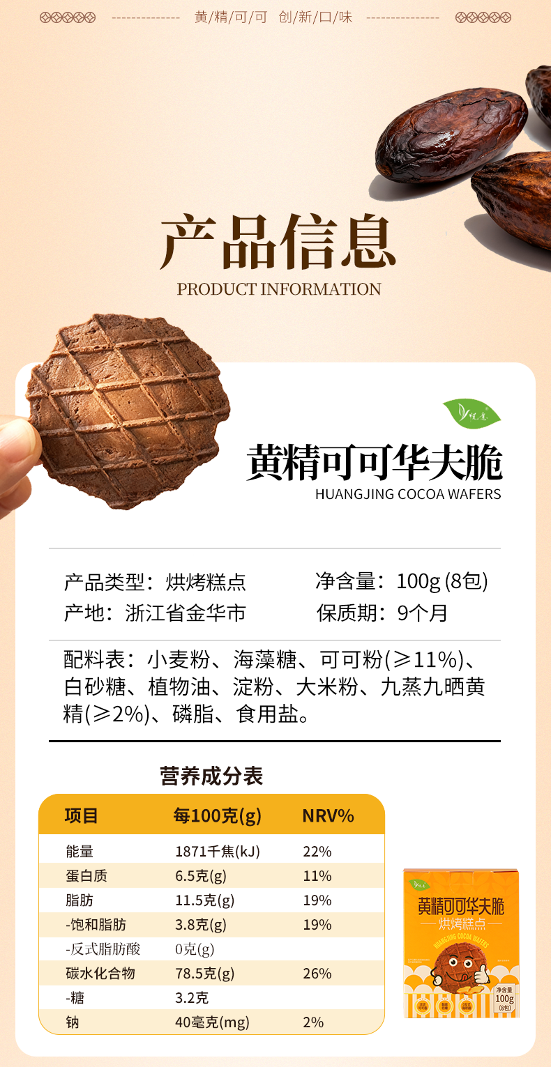 【悦意】黄精可可华夫脆100g(8包)*2盒