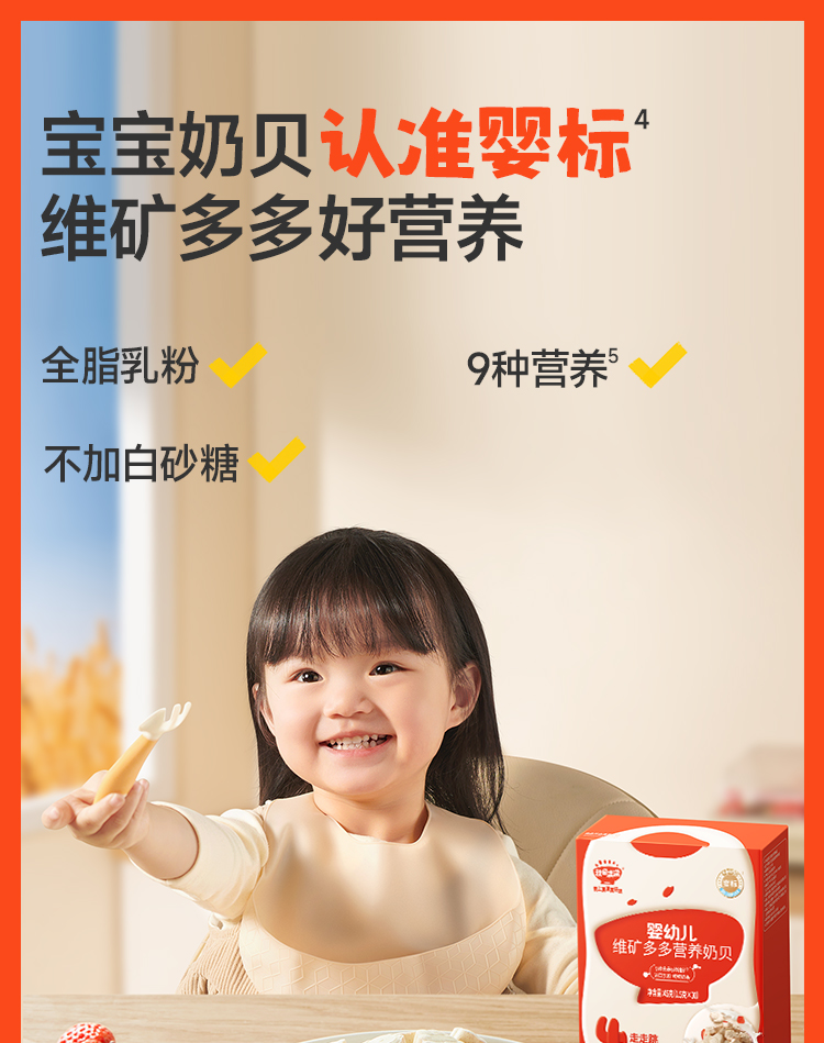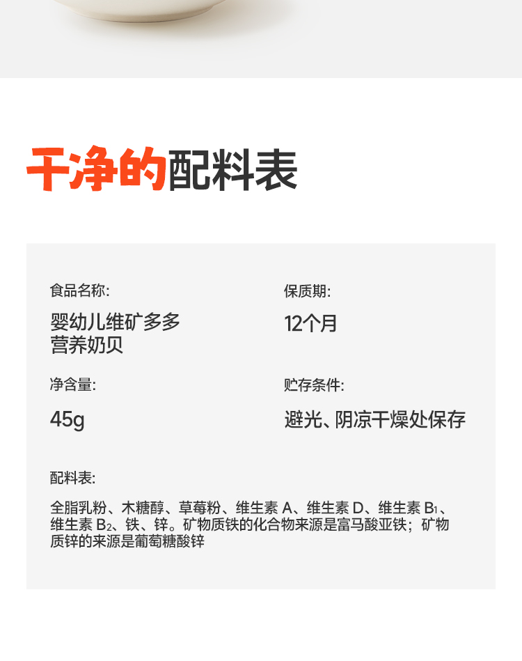 【零食】【婴标】卡通多重营养婴幼儿维矿多多营养奶贝45g