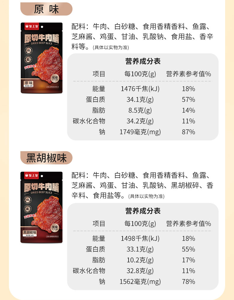 【皇上皇】原切牛肉脯组合40g*2