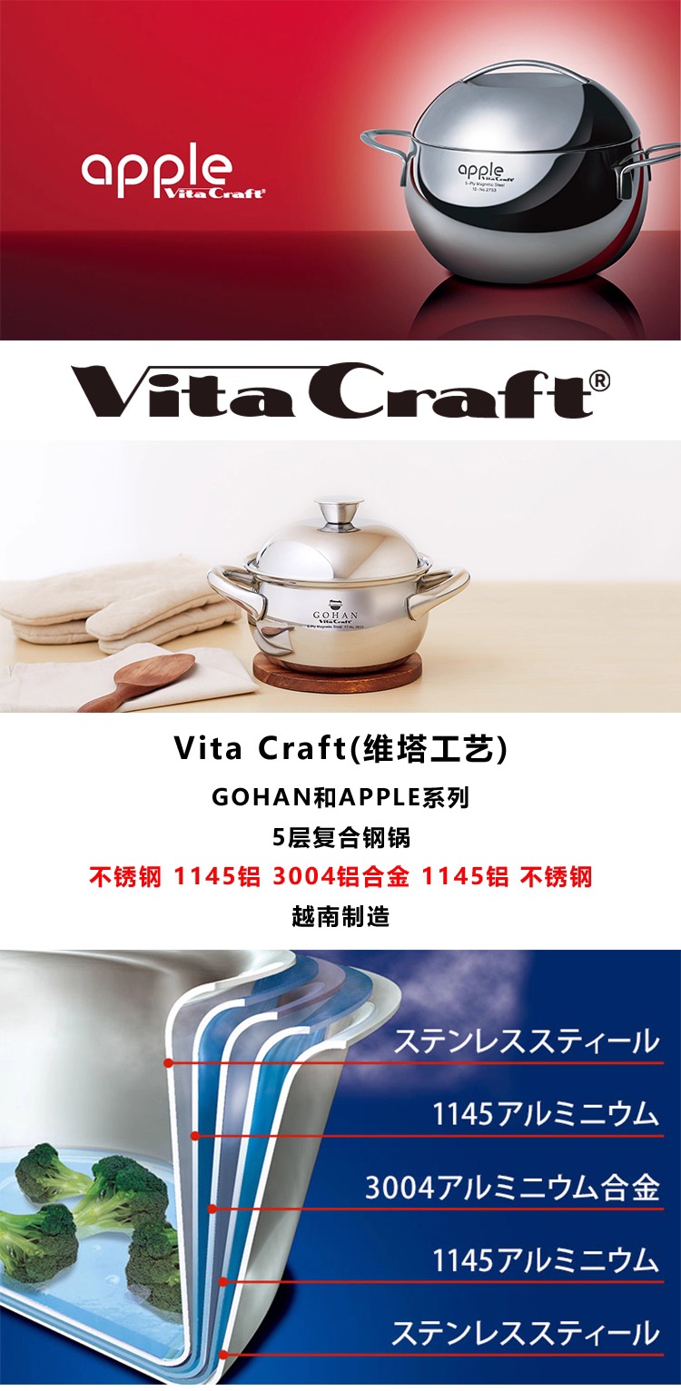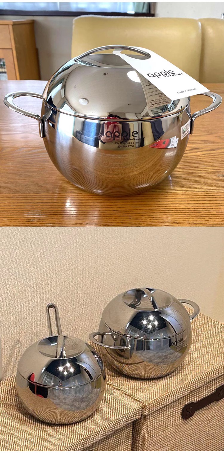 日本Craft apple系列双耳锅加厚复合不锈钢锅2.7L