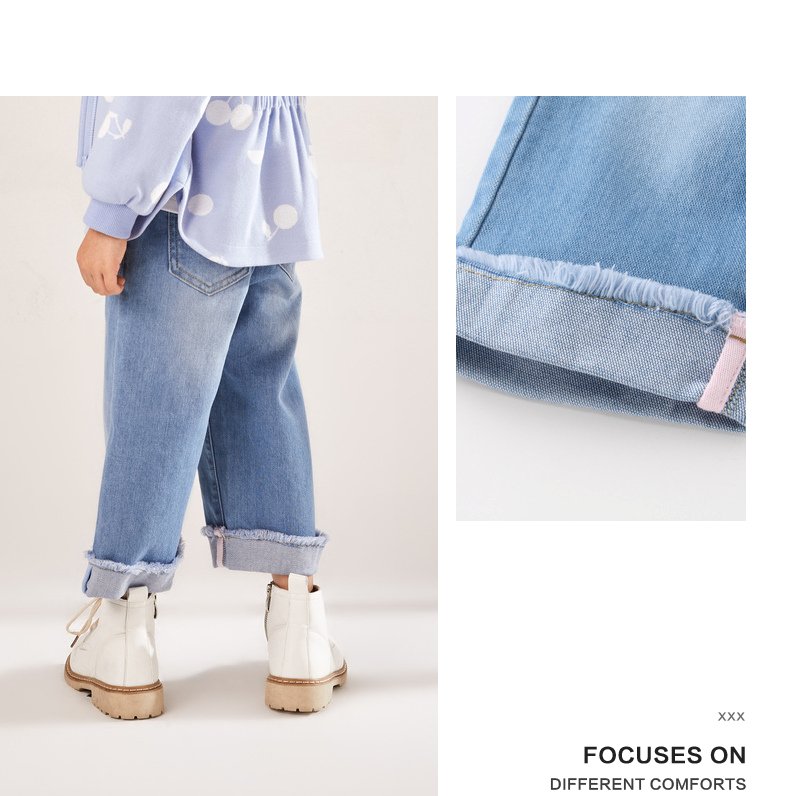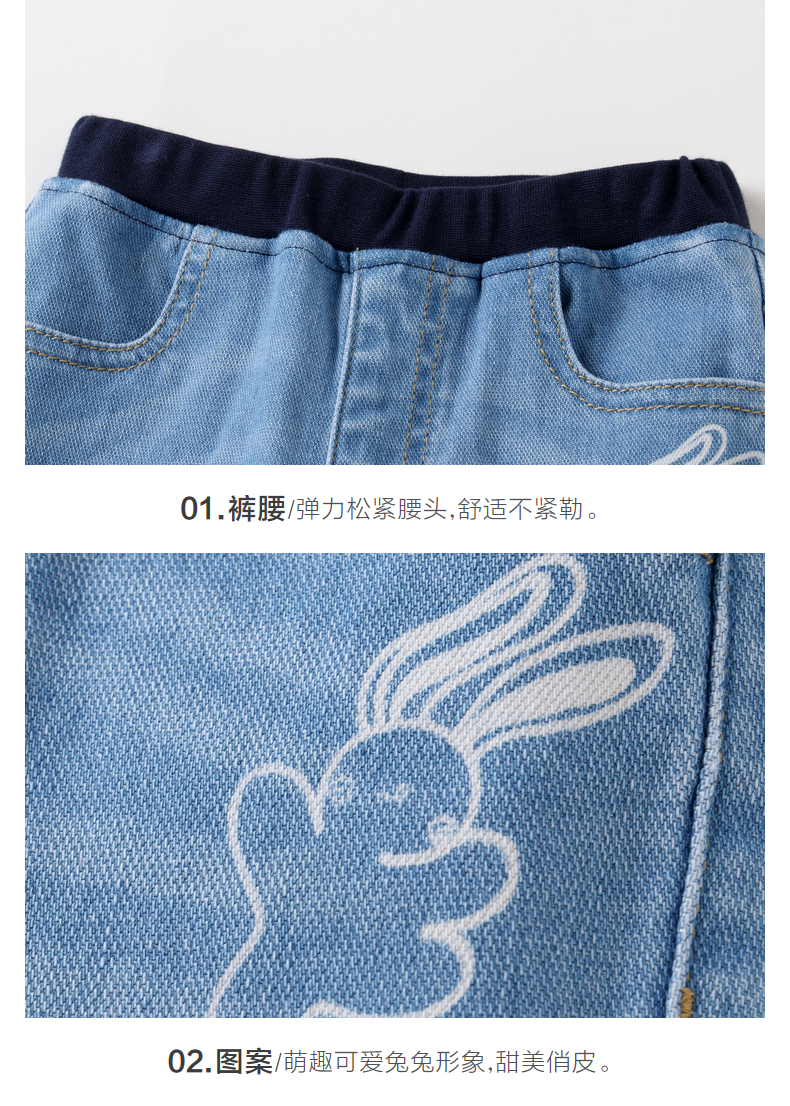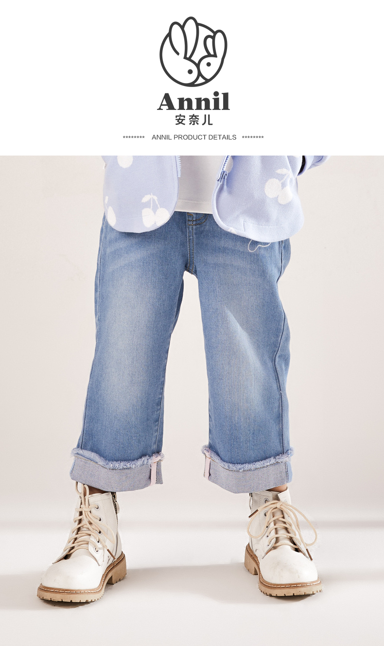安奈儿女童全腰梭织牛仔单裤xg216515