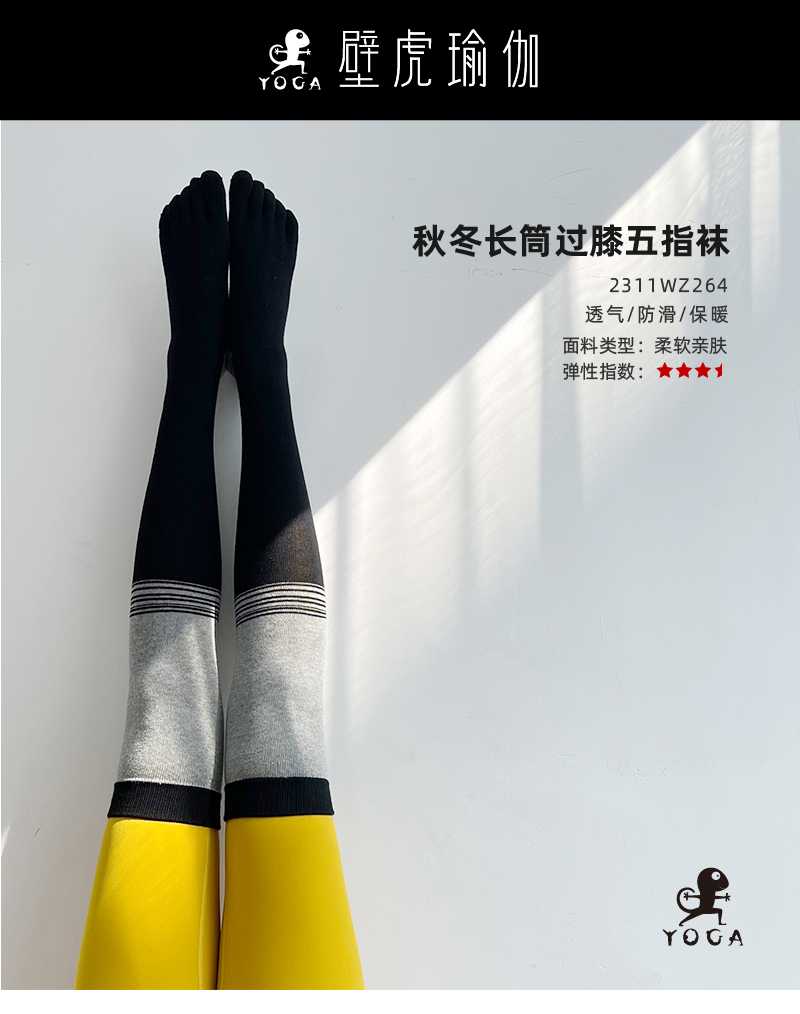 壁虎瑜伽【2310WZ264】防滑过膝长袜保暖五趾瑜伽袜【5天发货】