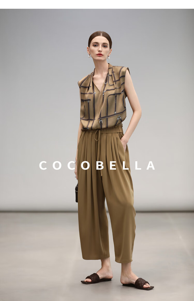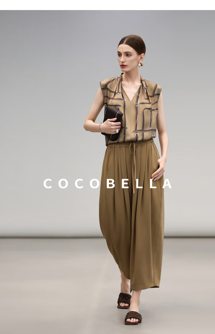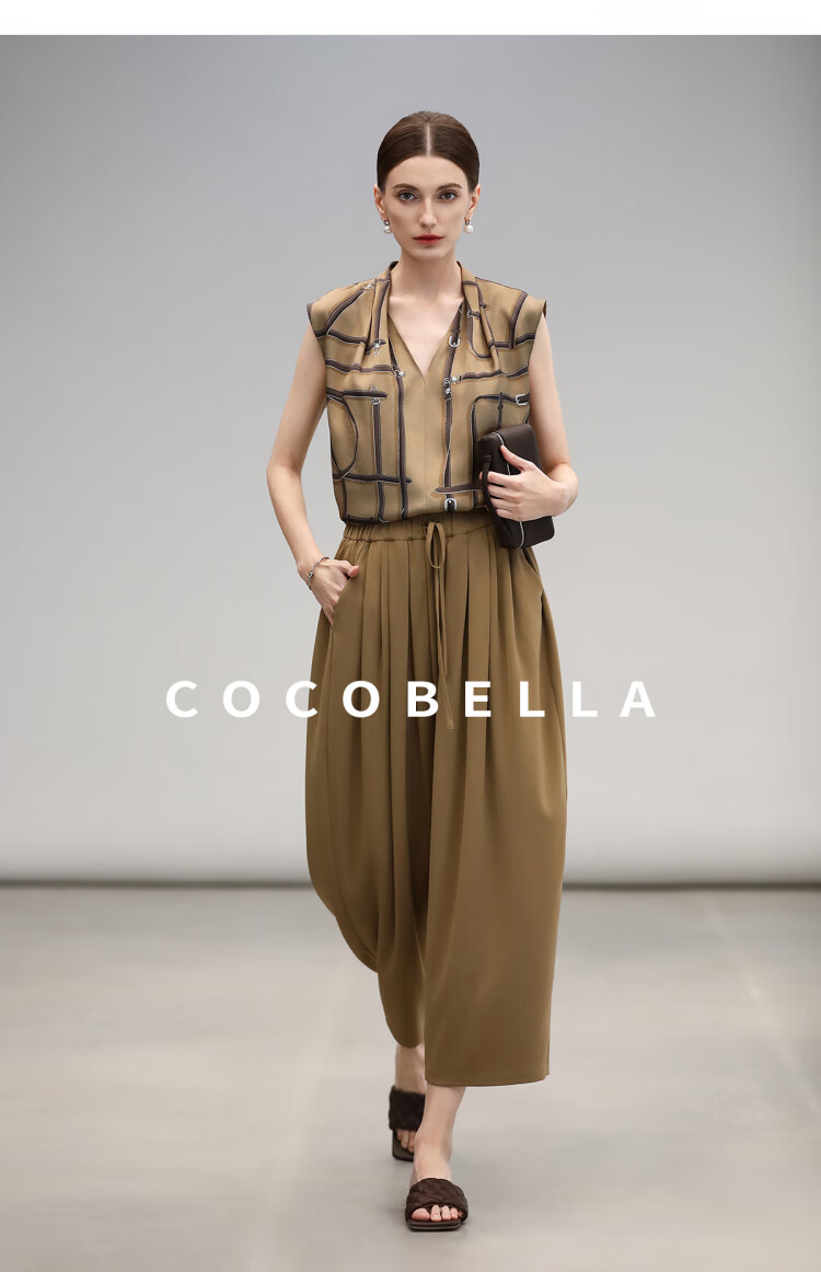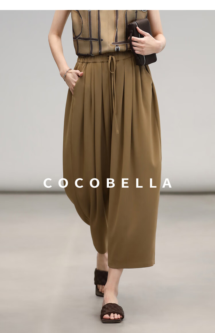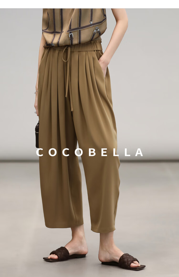 COCOBELLA重工捏褶木耳腰奶奶裤凉感高腰九分休闲裤PA3071-2