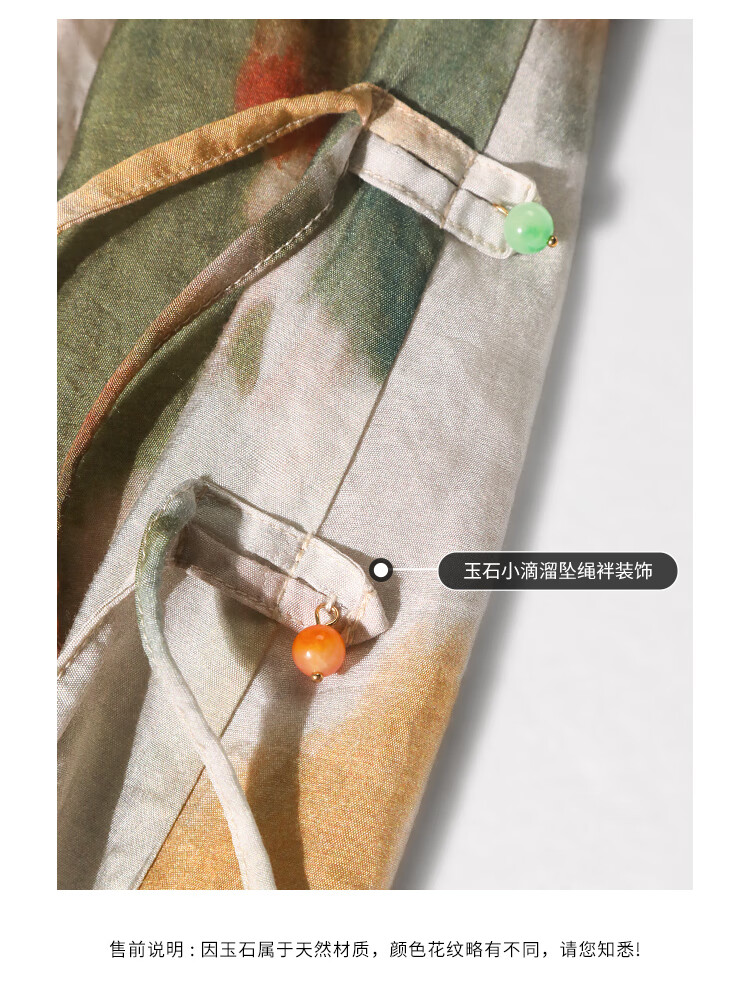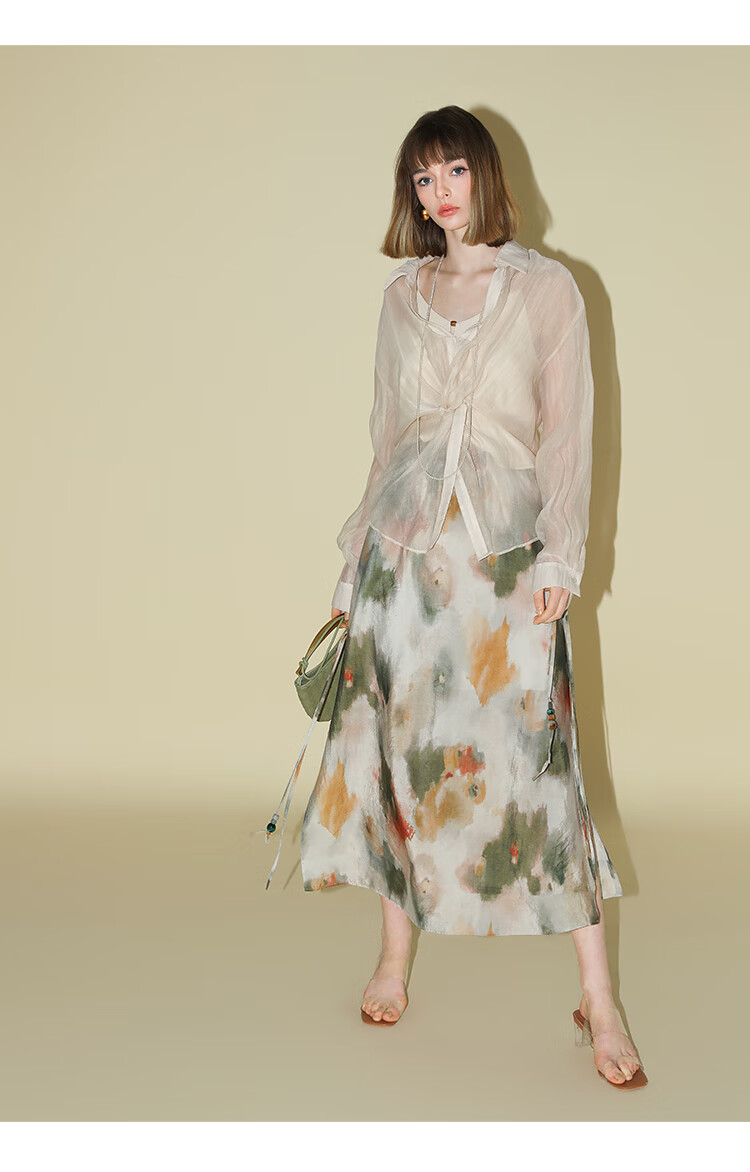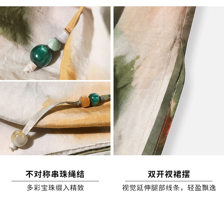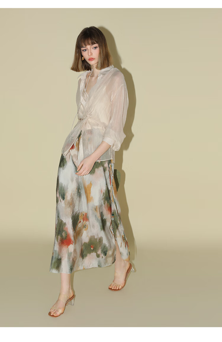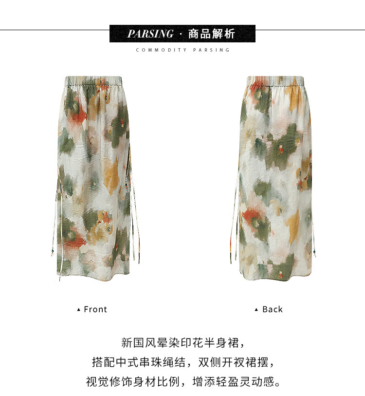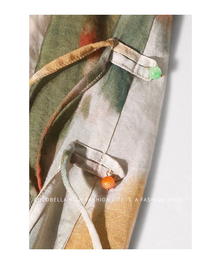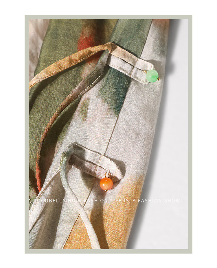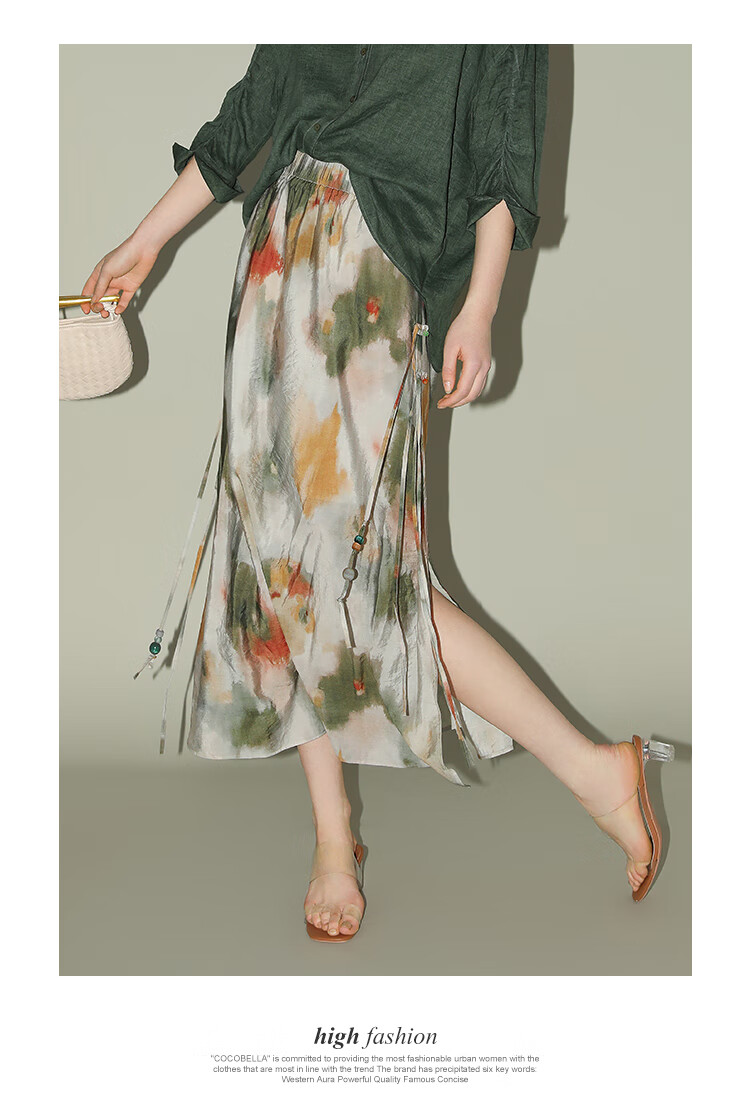 COCOBELLA国风晕染印花半身裙新中式串珠飘带大摆长裙HS7019