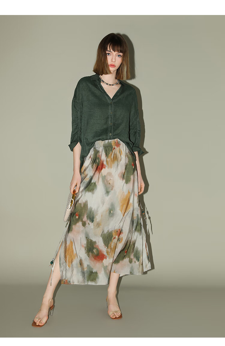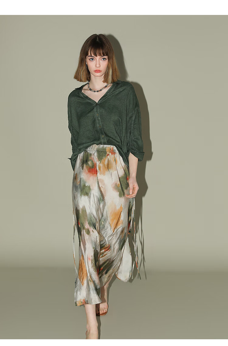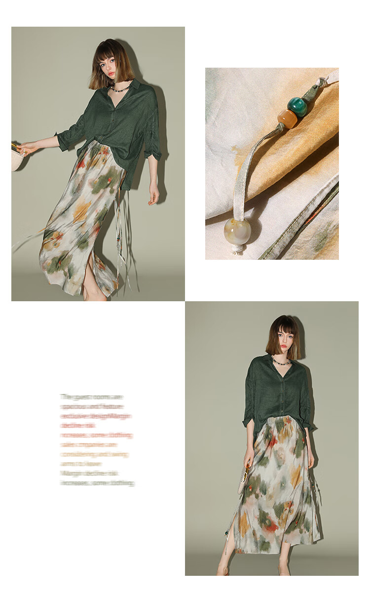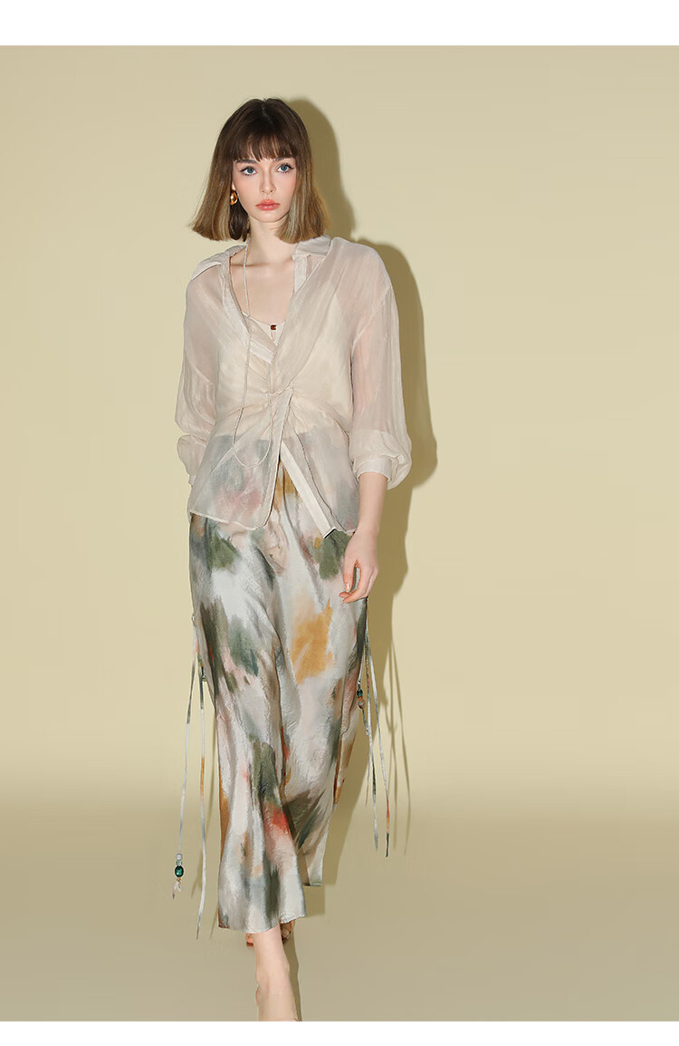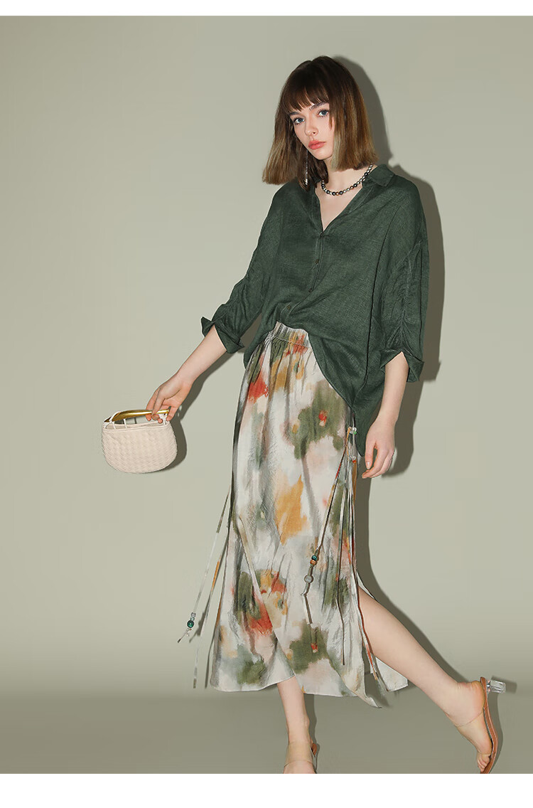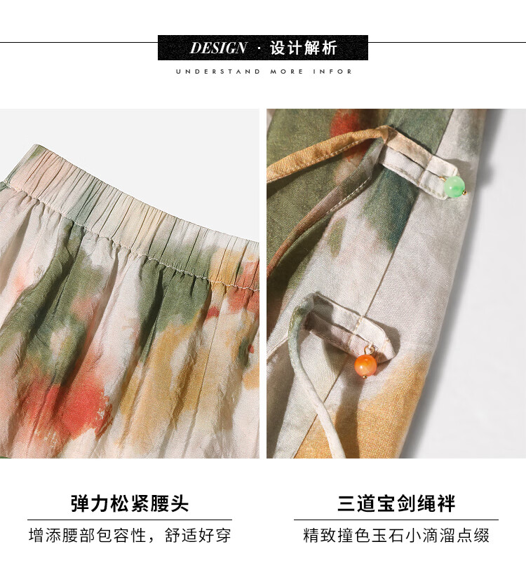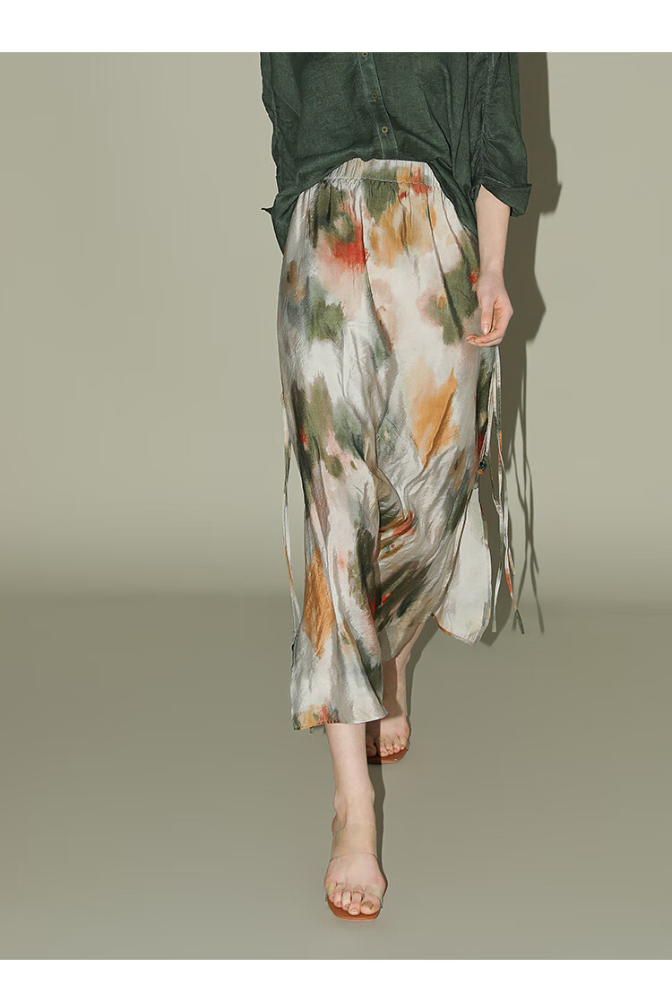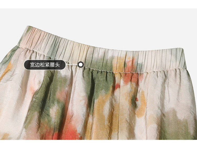 COCOBELLA国风晕染印花半身裙新中式串珠飘带大摆长裙HS7019