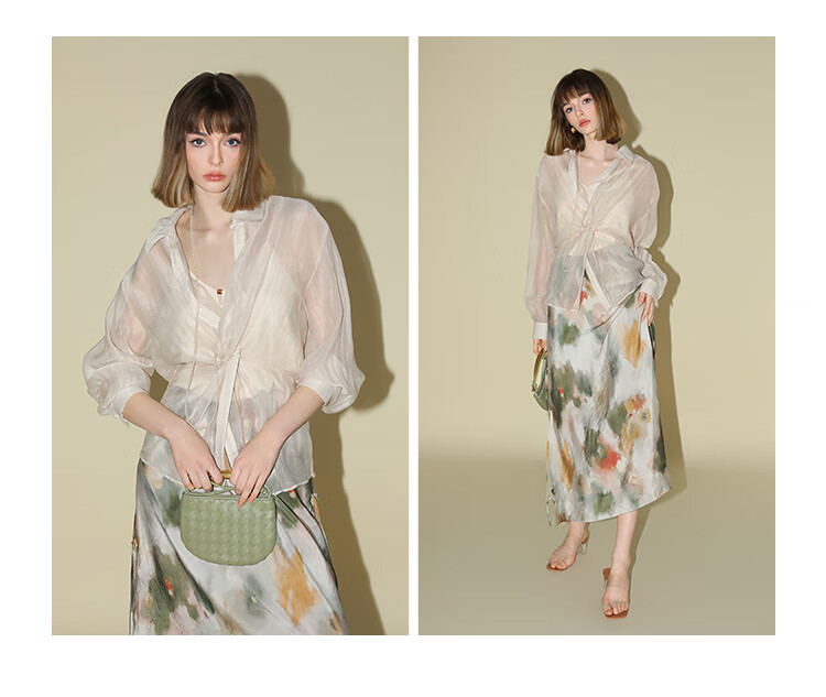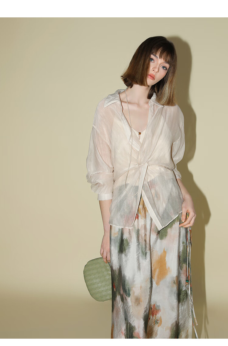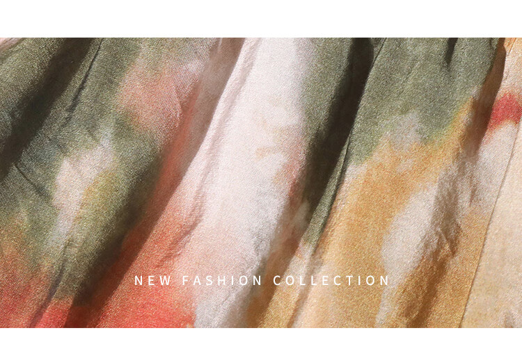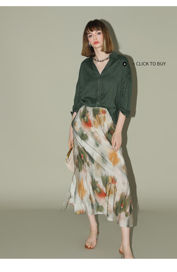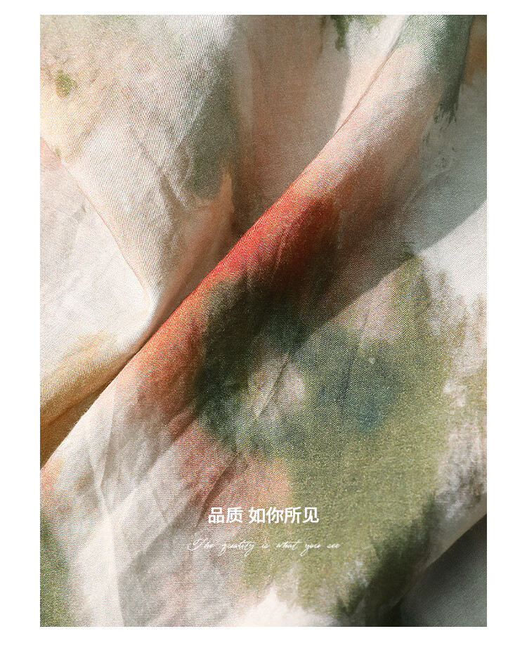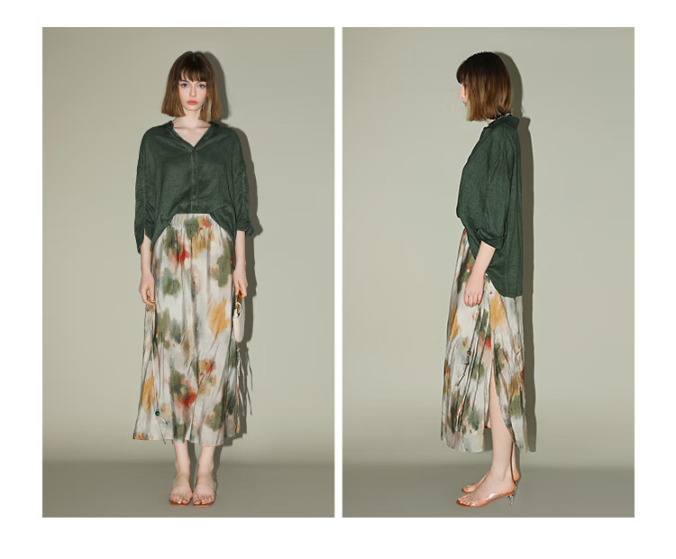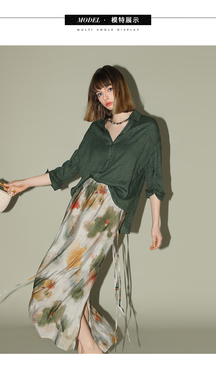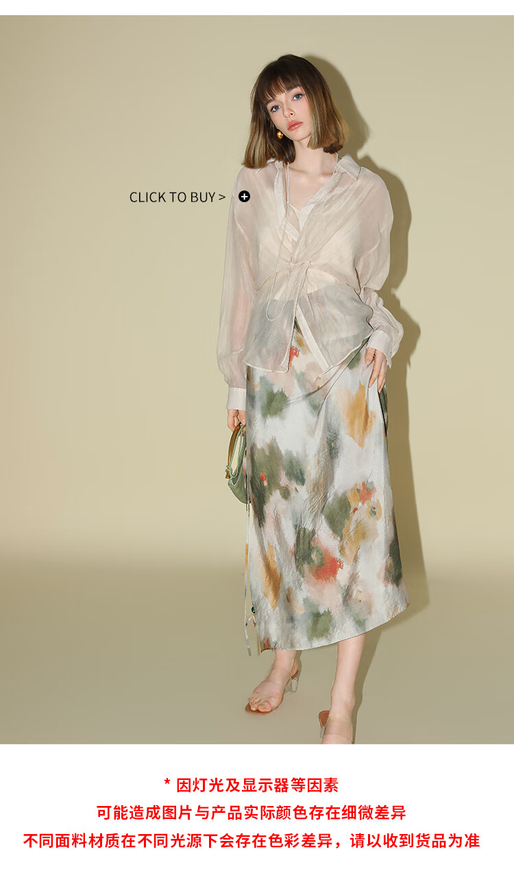 COCOBELLA国风晕染印花半身裙新中式串珠飘带大摆长裙HS7019