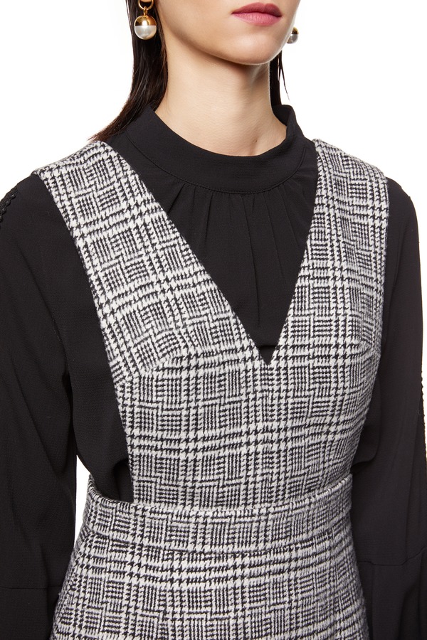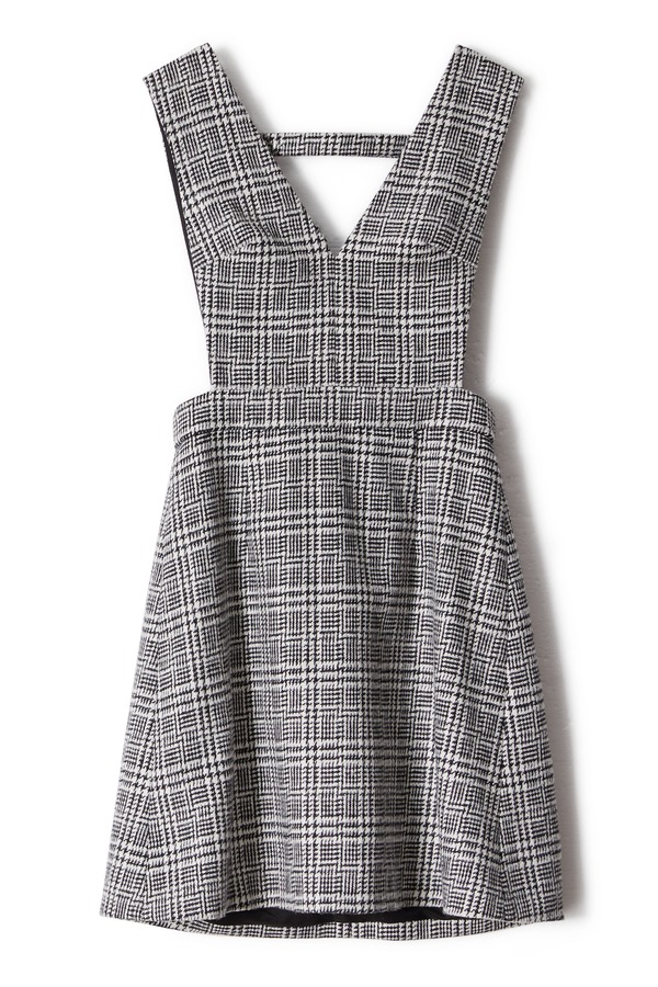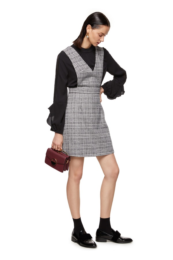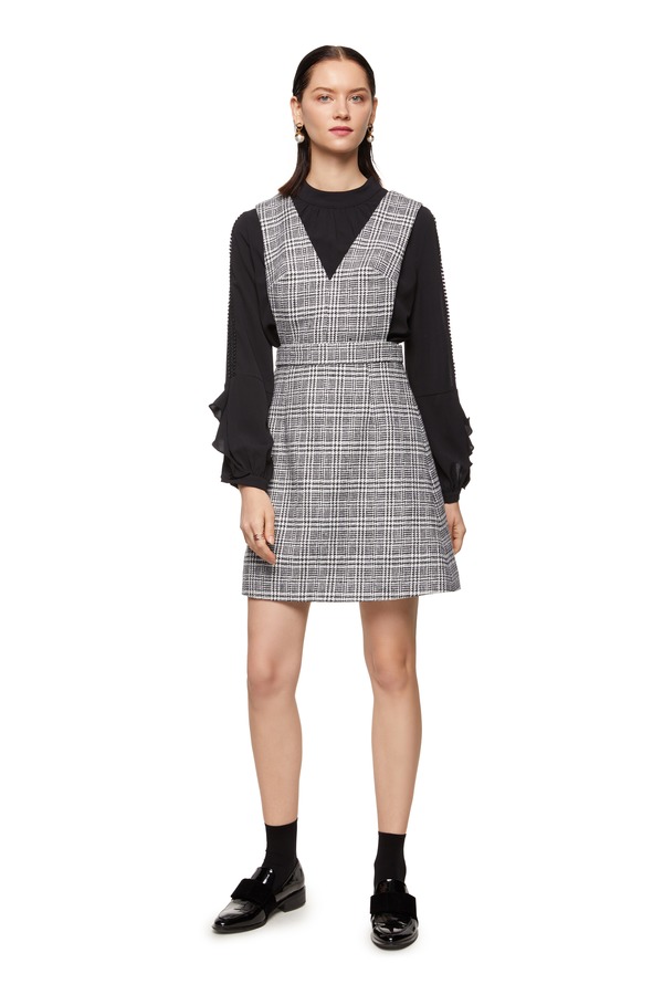 Le Malene 灰色经典千鸟格背带裙 8303
