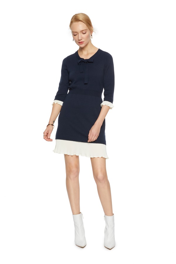 ELLA JADE 花边系带拼色连衣裙 5345