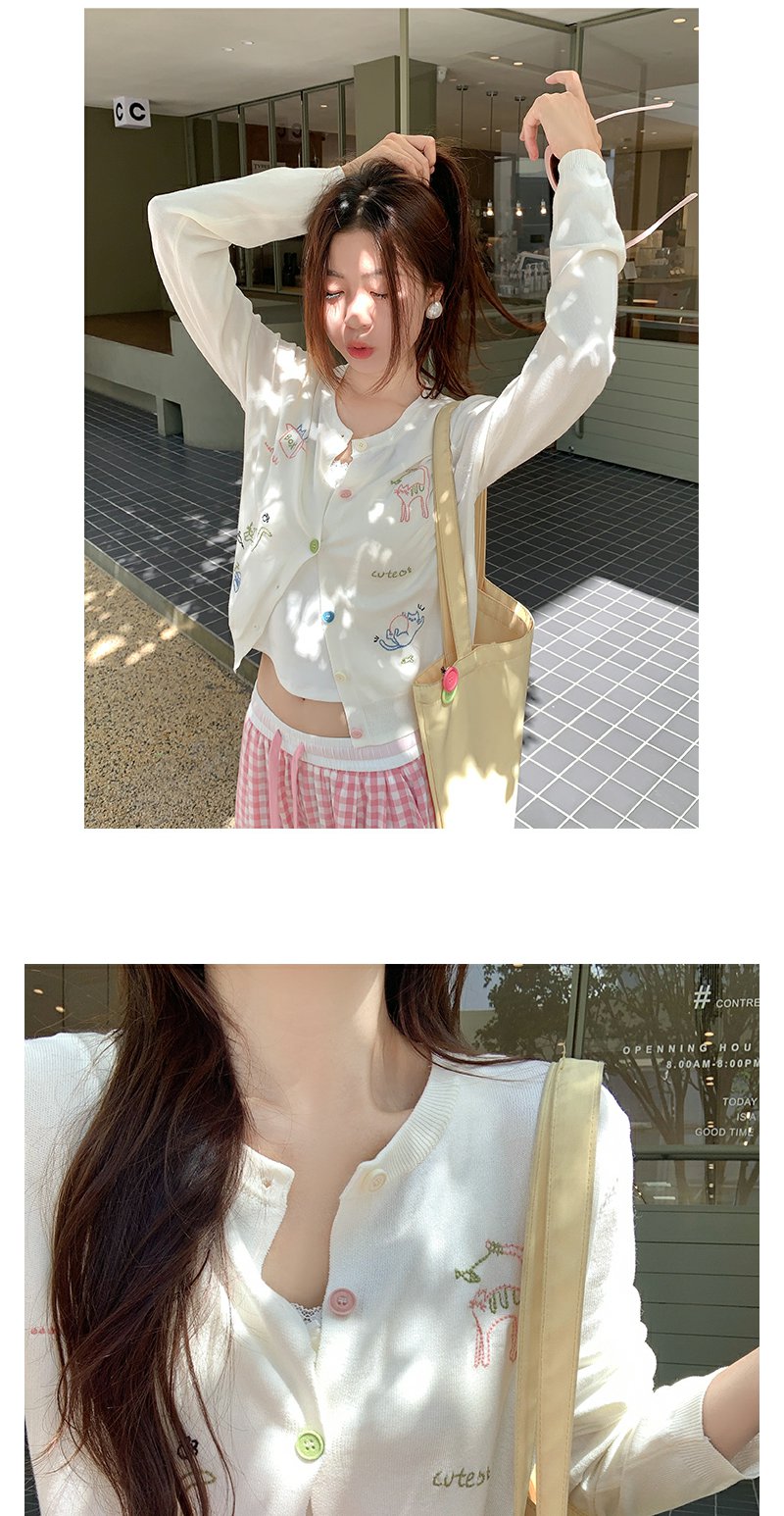 <曾小咸推荐>韩系温柔猫咪绣花针织开衫防晒衫