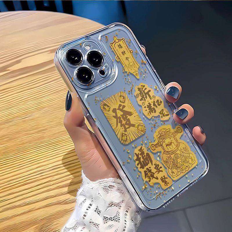 【搞钱要紧❗️招米苹果手机壳】福气上手,添福添喜,好运连连,过吉祥如意年!马年新年黄金财适用15 16 17promax手机壳11精孔软壳14pro高级感XSmax招