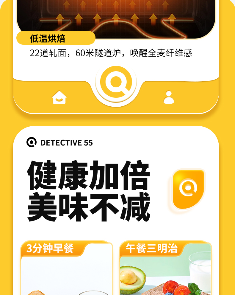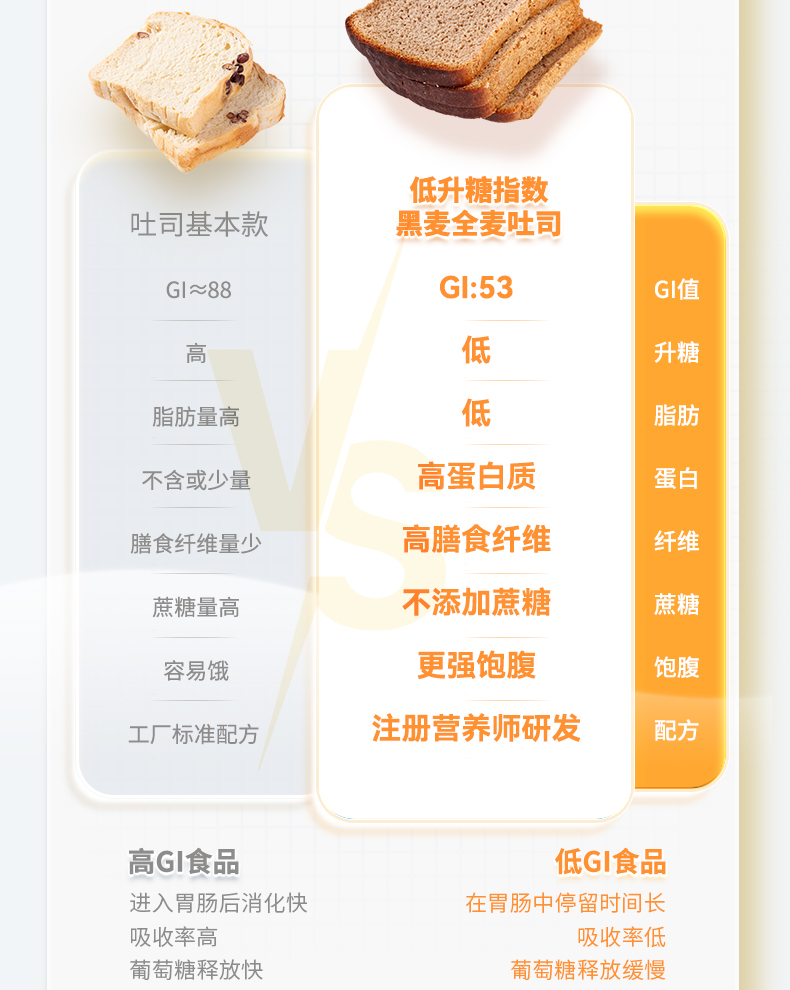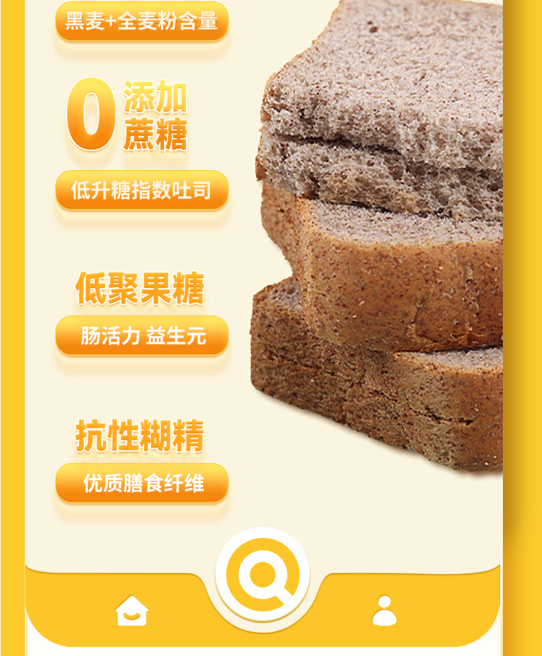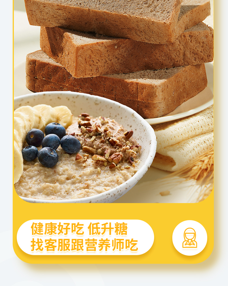 神探伍伍 低升糖指数黑麦全麦吐司500g