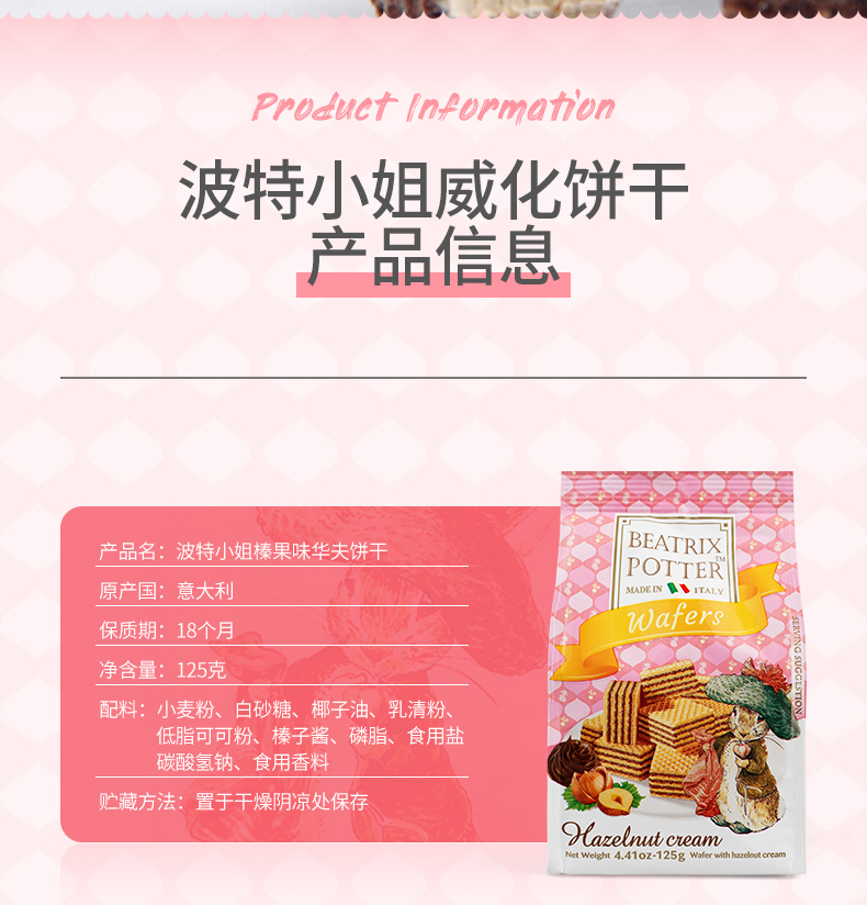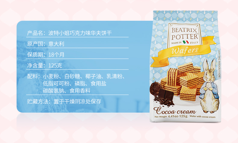 比得兔 榛子&可可酱夹心威化饼干 125g