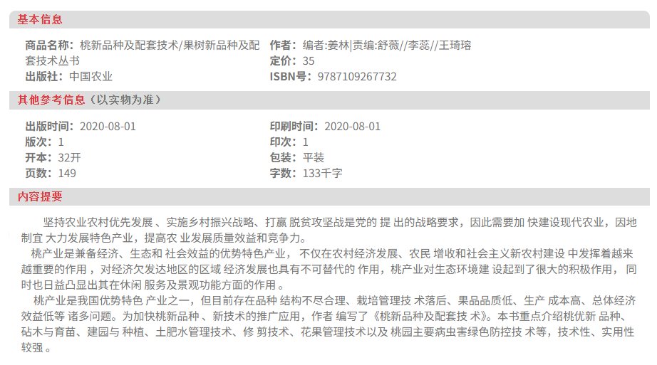 桃新品种及配套技术【官方正版,可开发票】