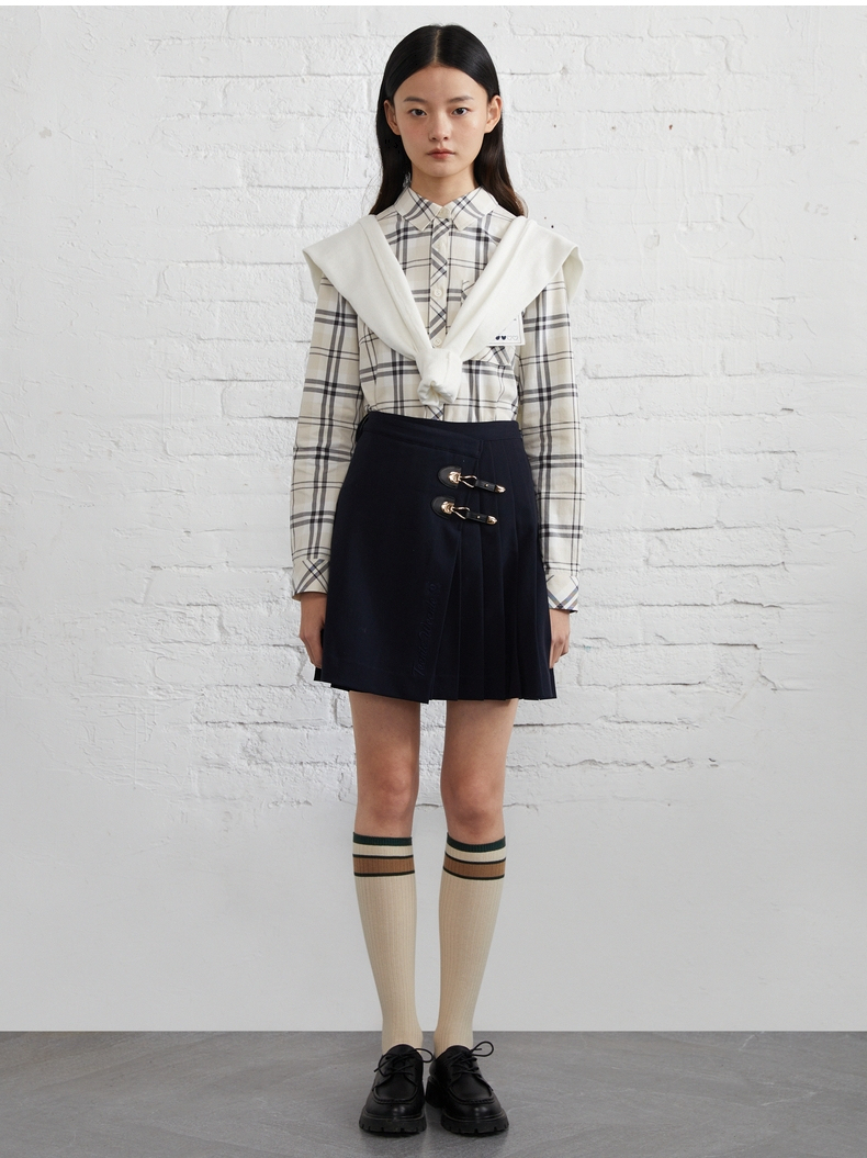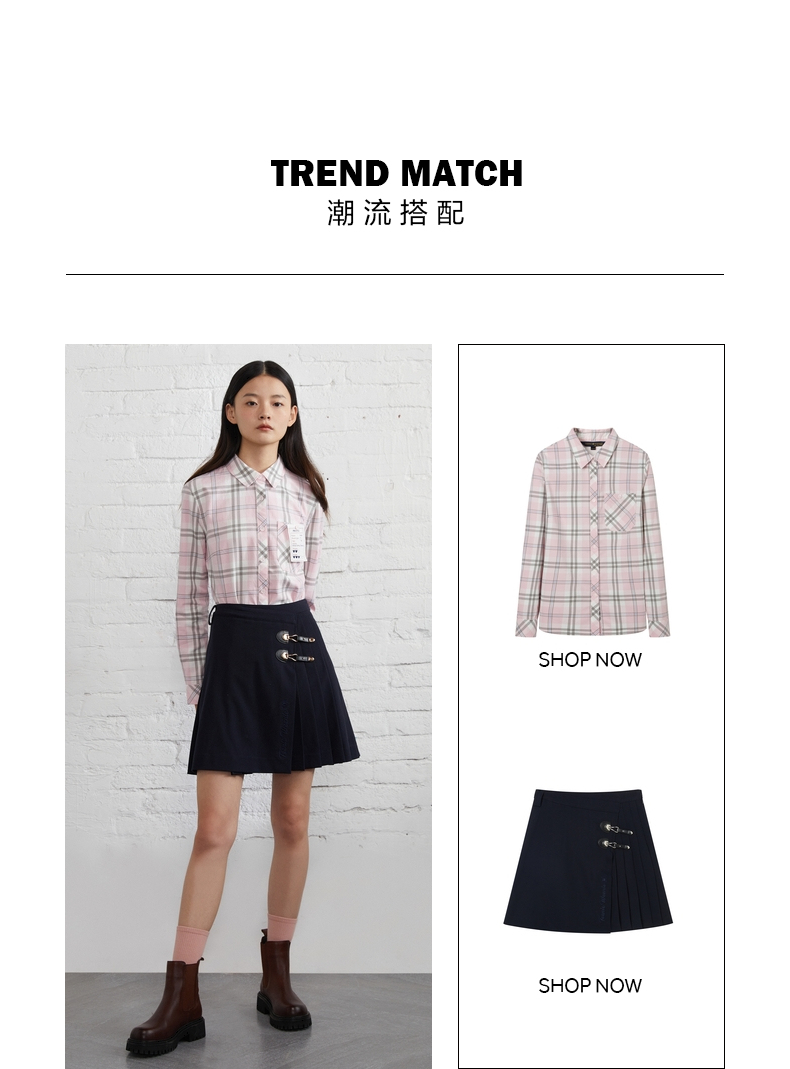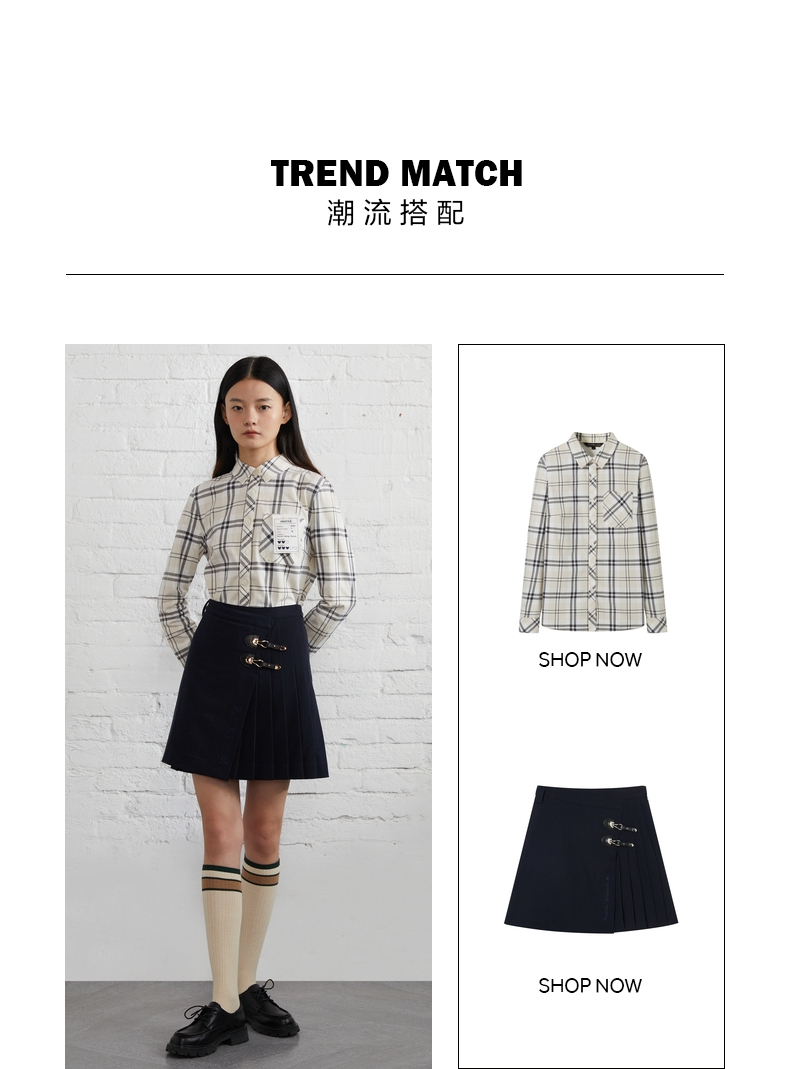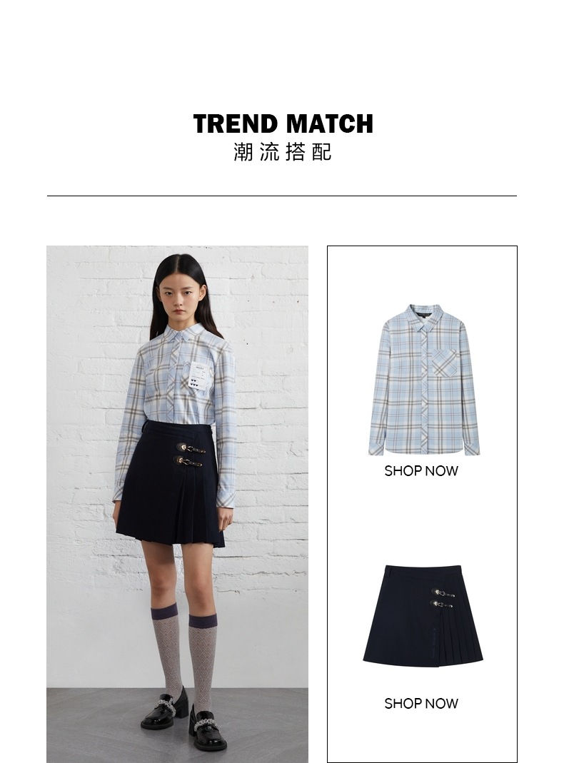 TeenieWeenie小熊22春小熊女装经典格子长袖衬衫TTYC221206P