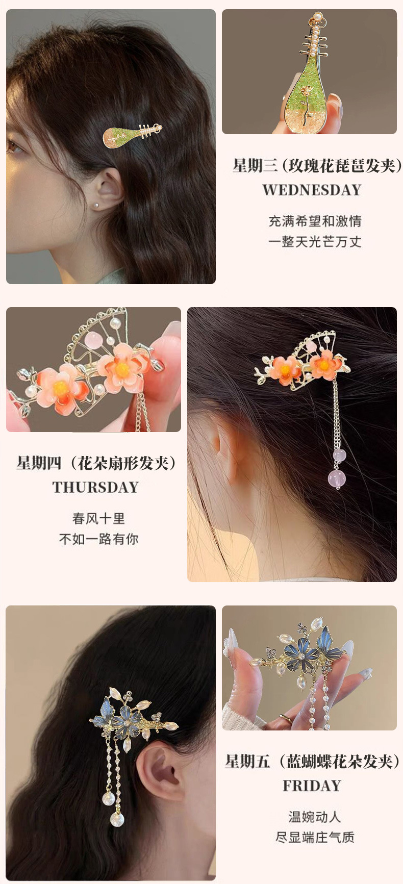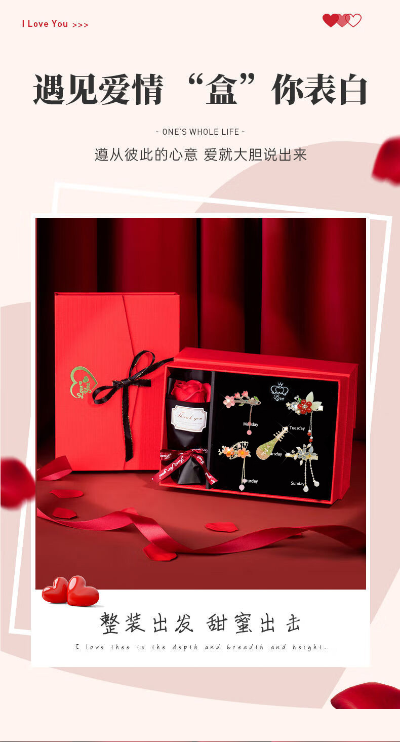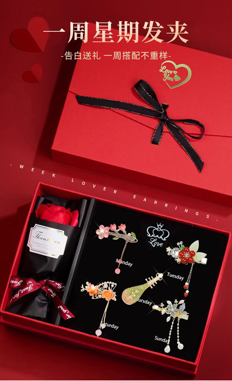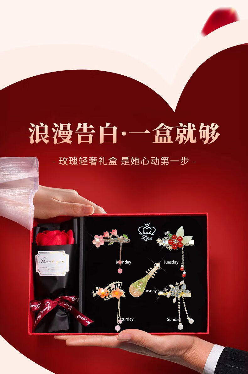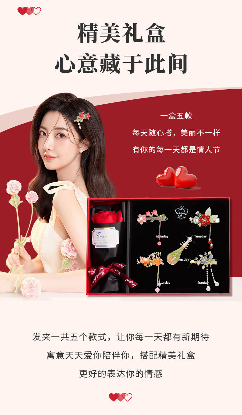 春节不打烊【一周星期发夹❗轻奢浪漫】情人节玫瑰花发夹高级感精致侧边刘海一字夹花朵头饰发饰生日礼物送女生。rf