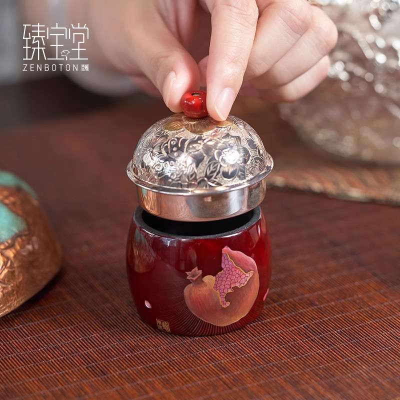 臻宝堂盖置大漆石榴壶盖托架金属纯手工摆件高端茶具配件宋韵系列榴实盖置