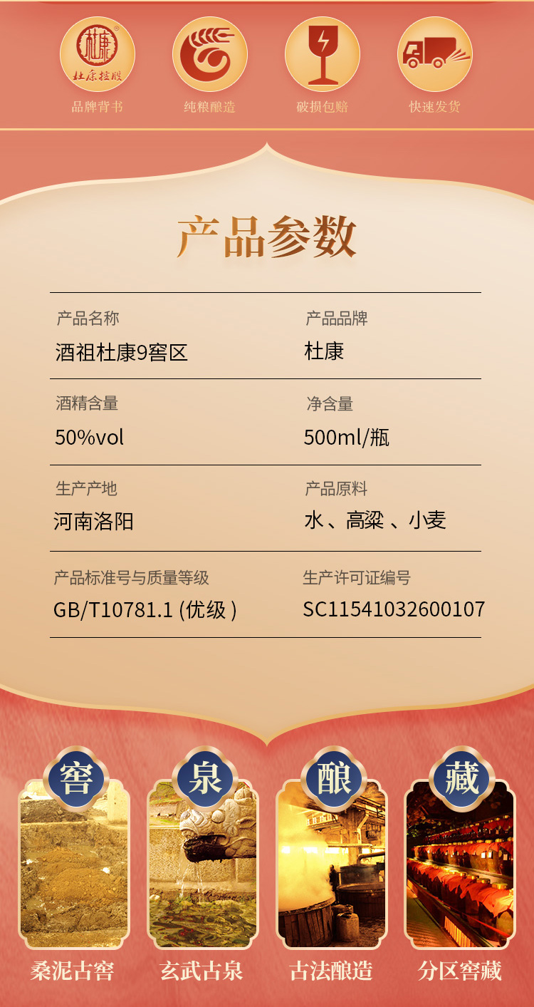 酒祖杜康新9窖区500ml*6瓶整箱浓香型白酒40年窖龄酒