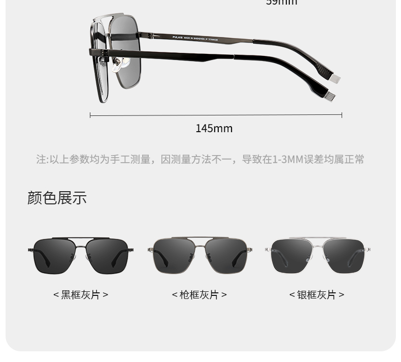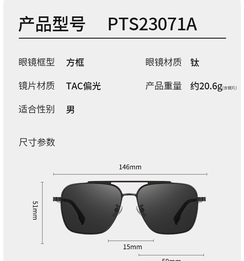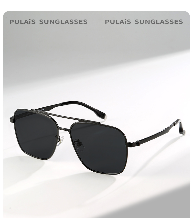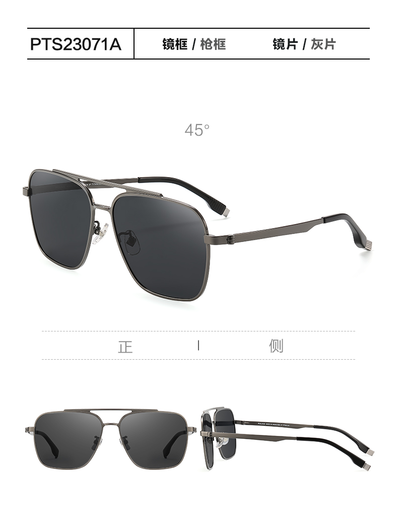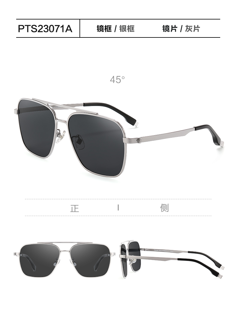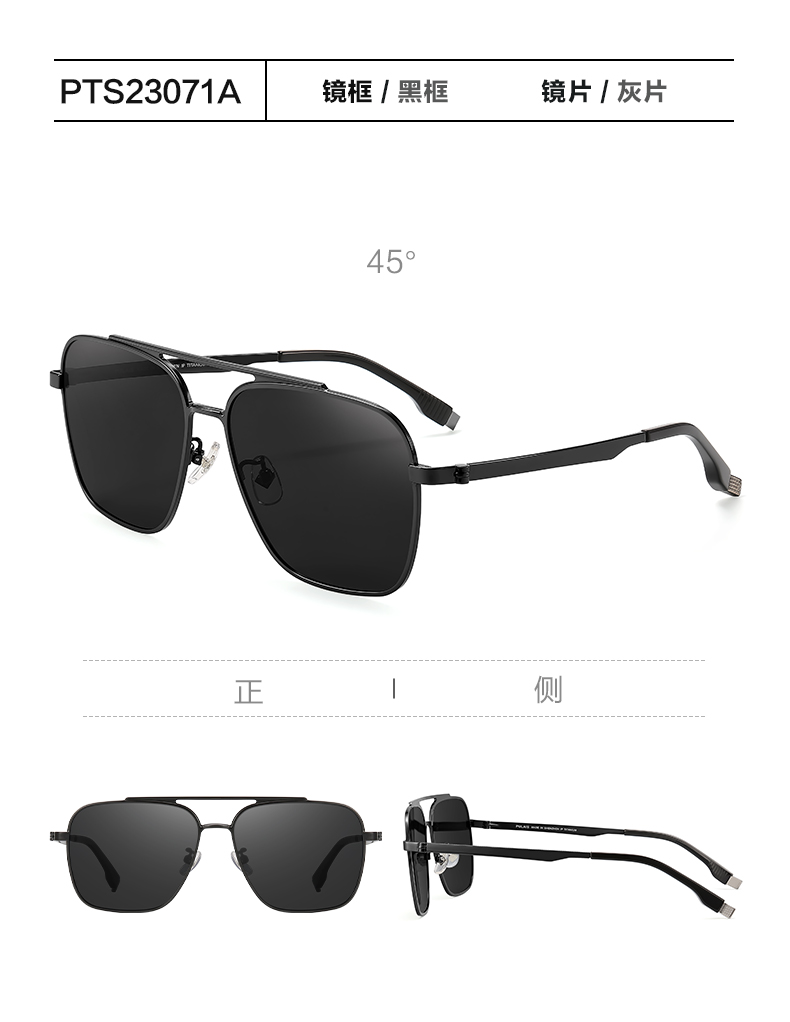 普莱斯新款太阳镜PTS23071A 经典飞行员双梁潮镜 纯钛镜框 TAC偏光镜片 三色可选