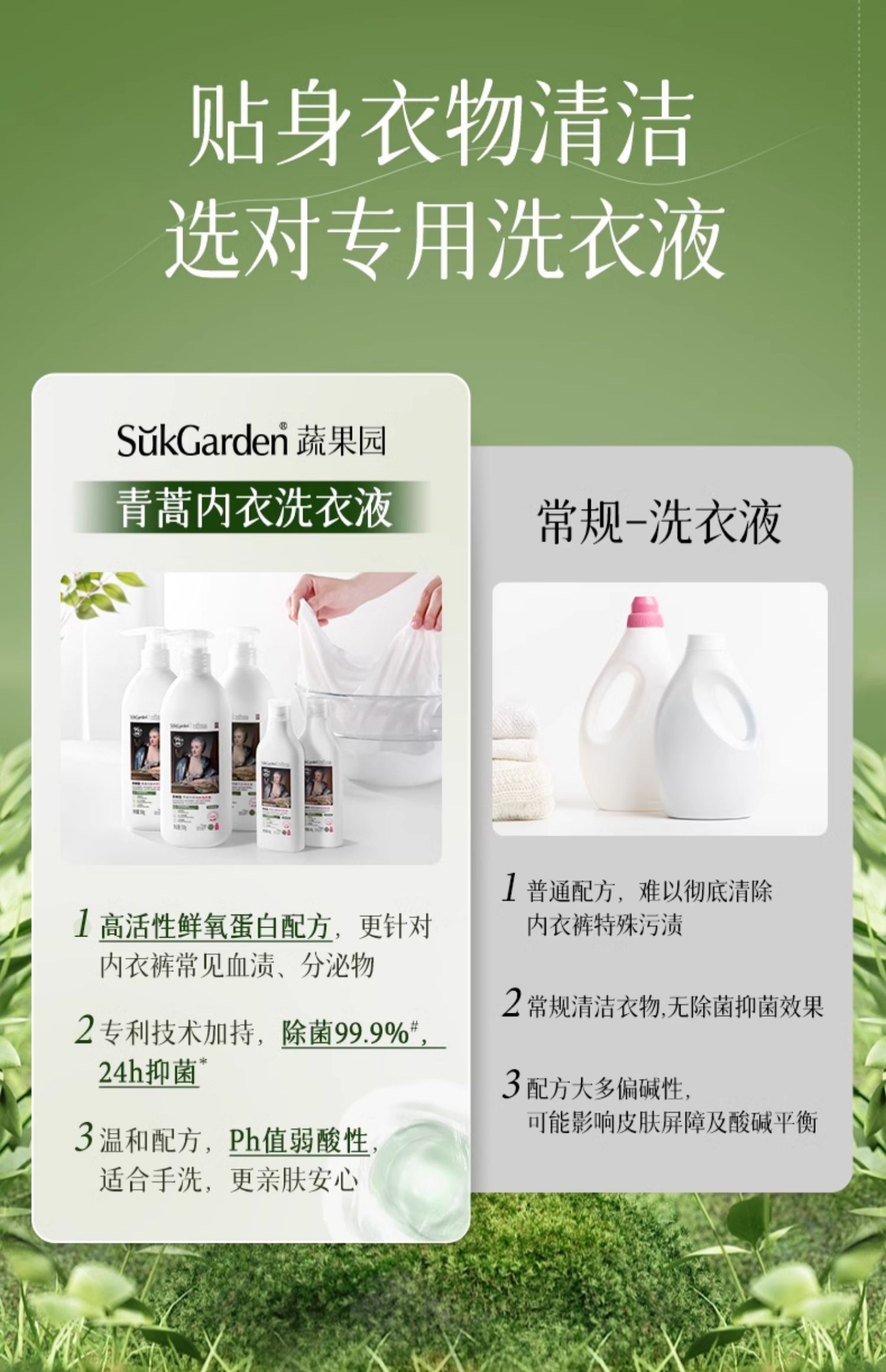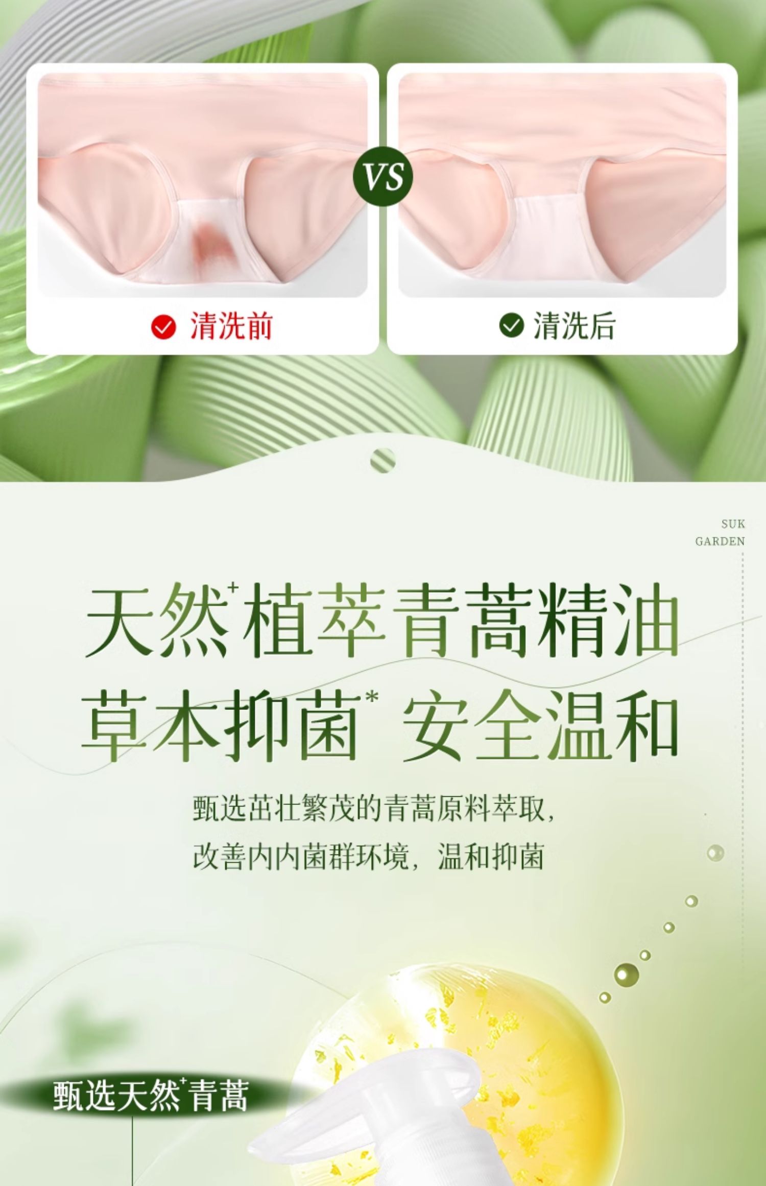 【蔬果园青蒿内衣除菌洗衣液】蔬果园洗内衣内裤清洗液专用男女士内衣裤抑菌