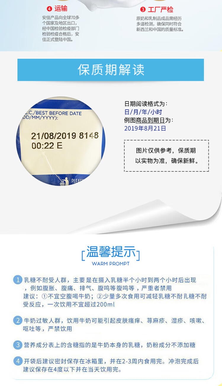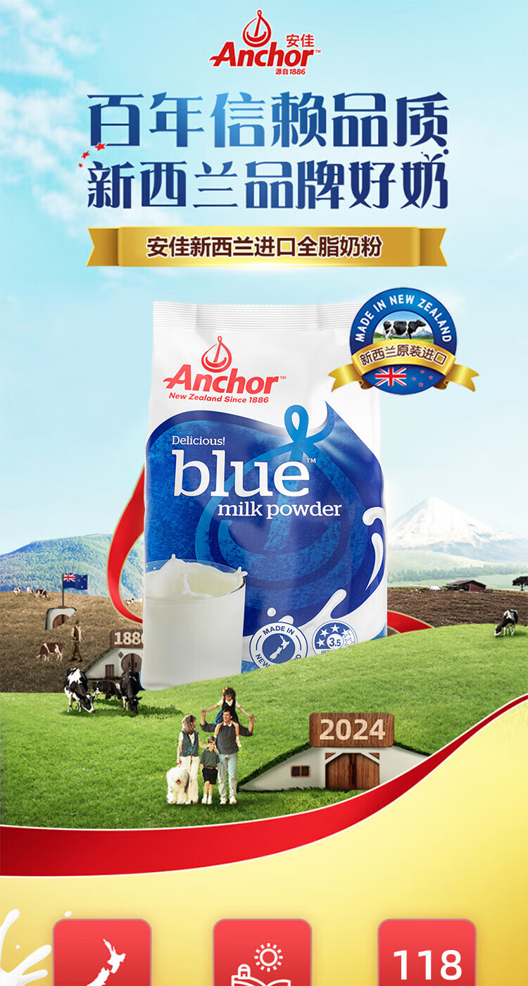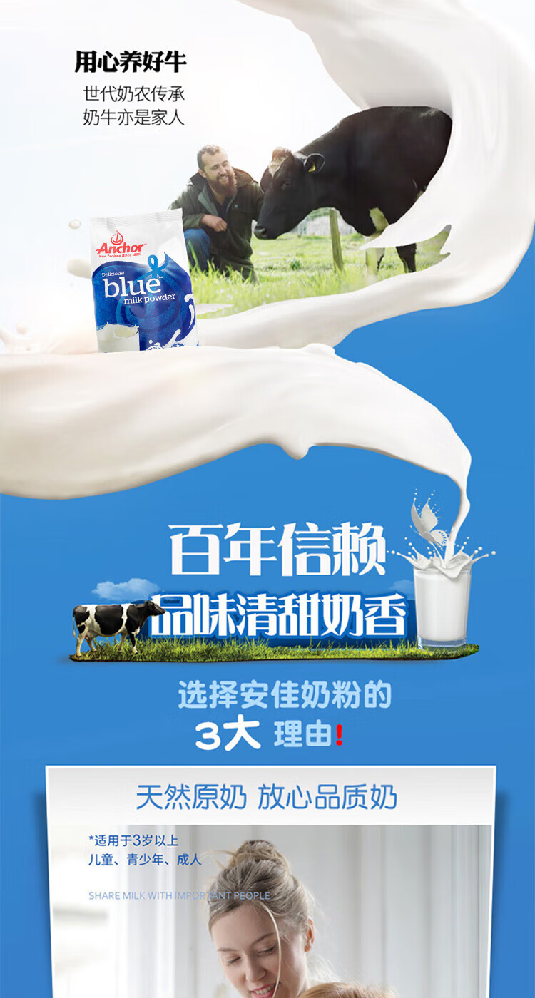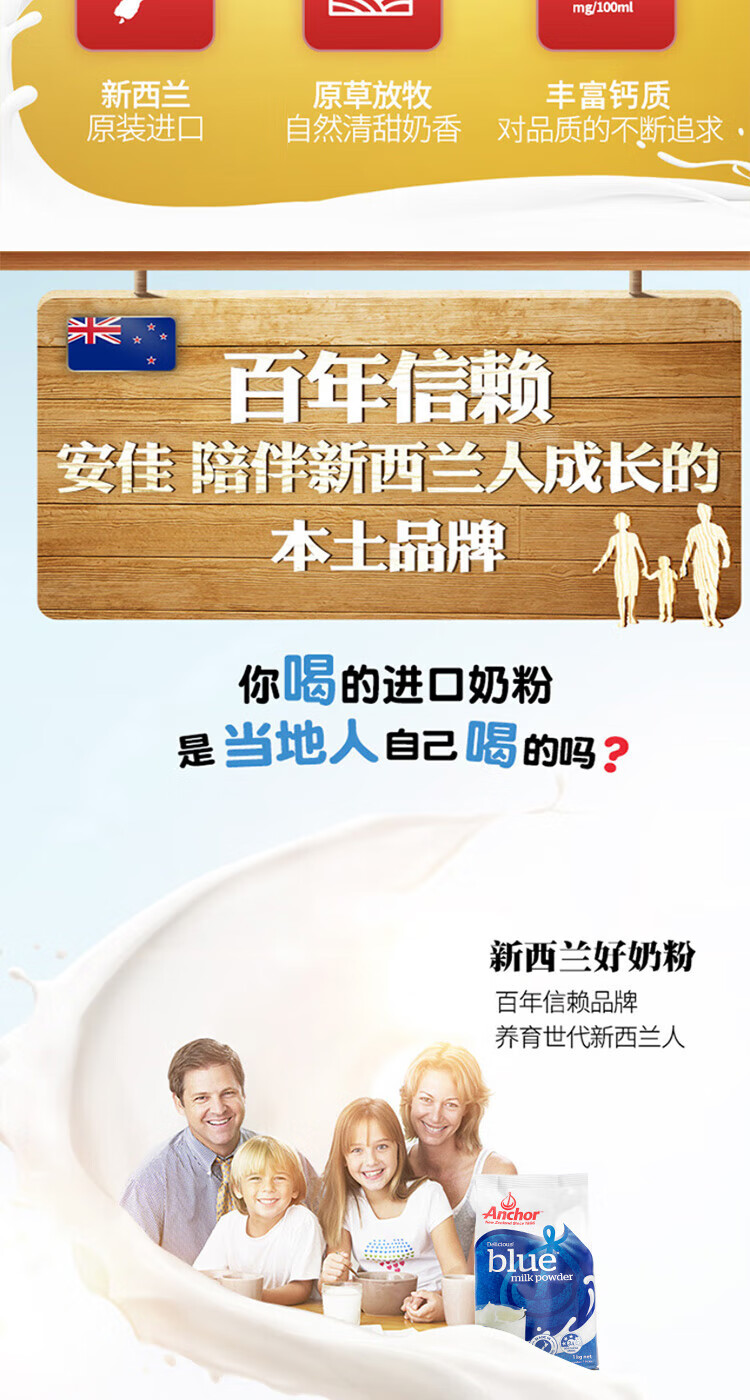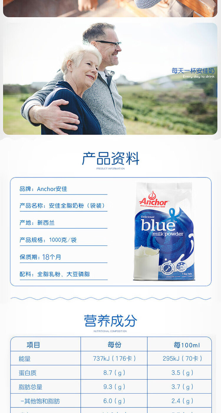 【海豚美购】新西兰安佳成人奶粉 全脂袋装1KG