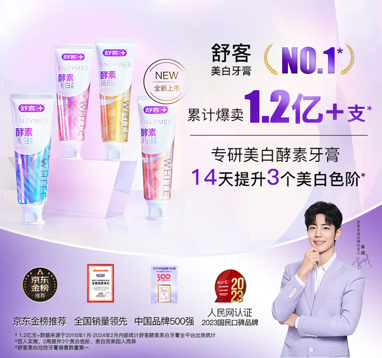 【自营】舒客精研亮白酵素牙膏(鲜萃青柠)120g*3支