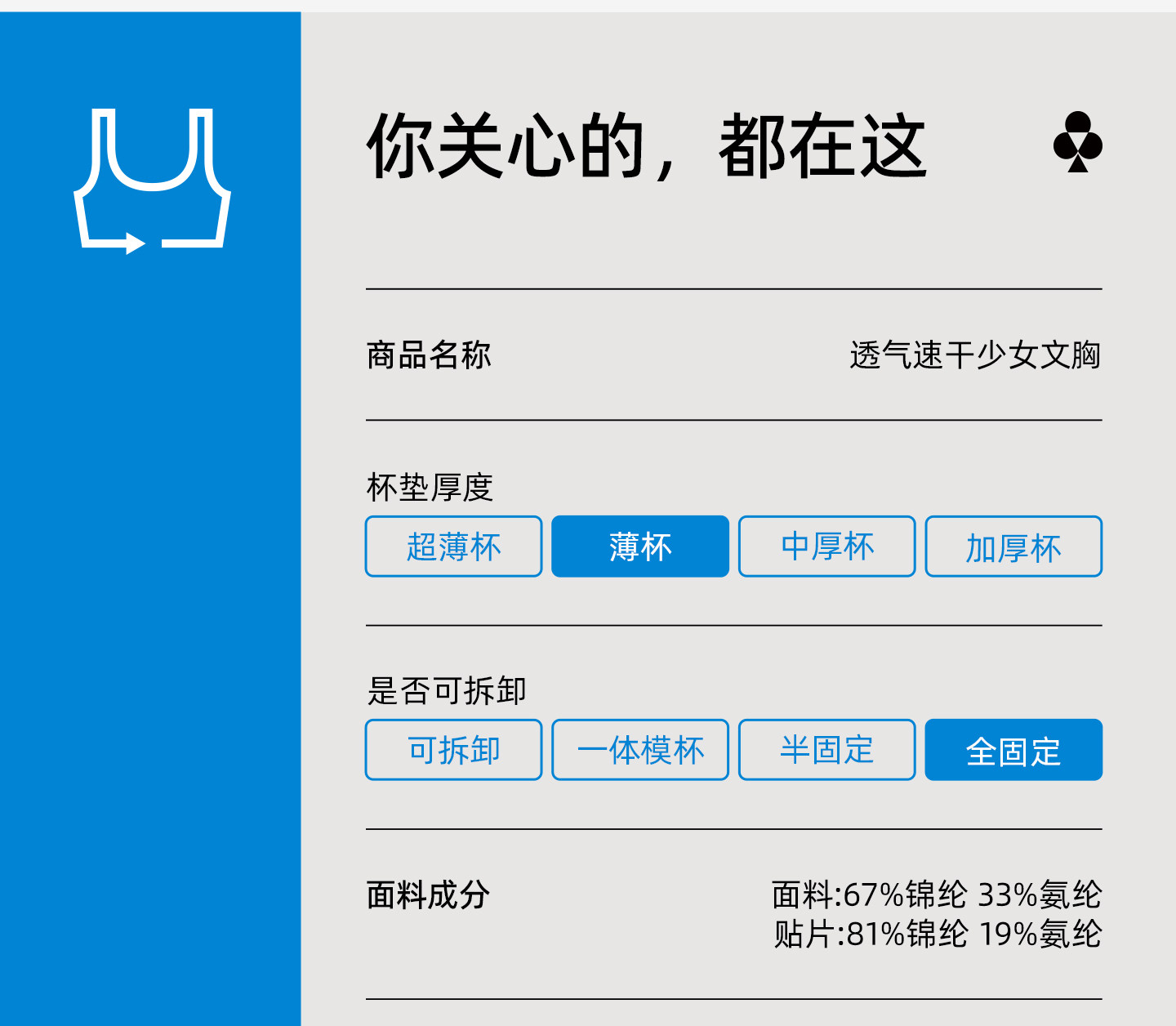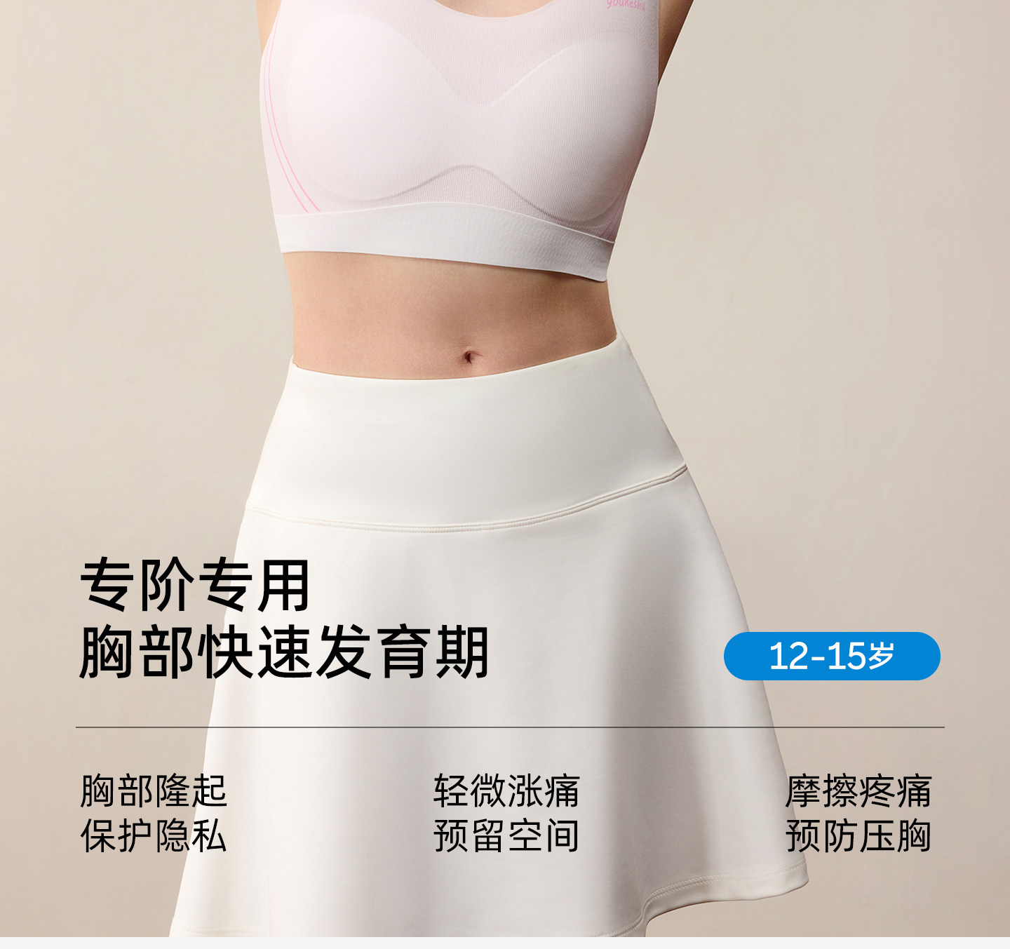 有棵树无痕运动防震舒适固定杯二阶抗菌少女文胸-BA013