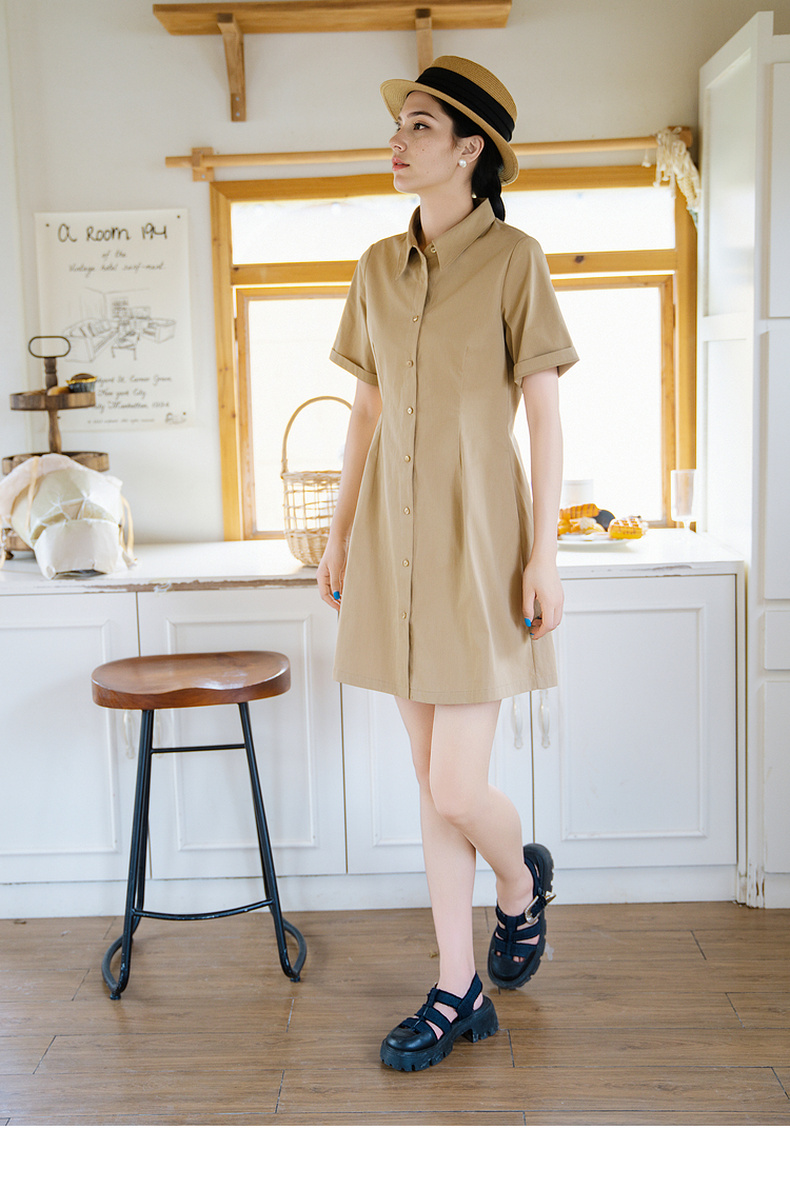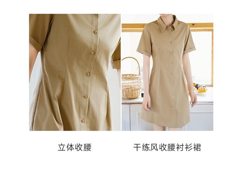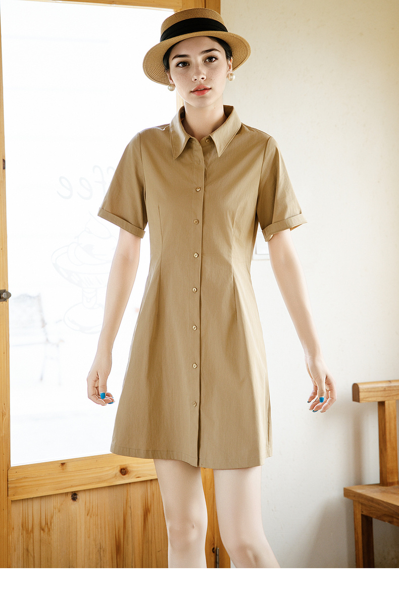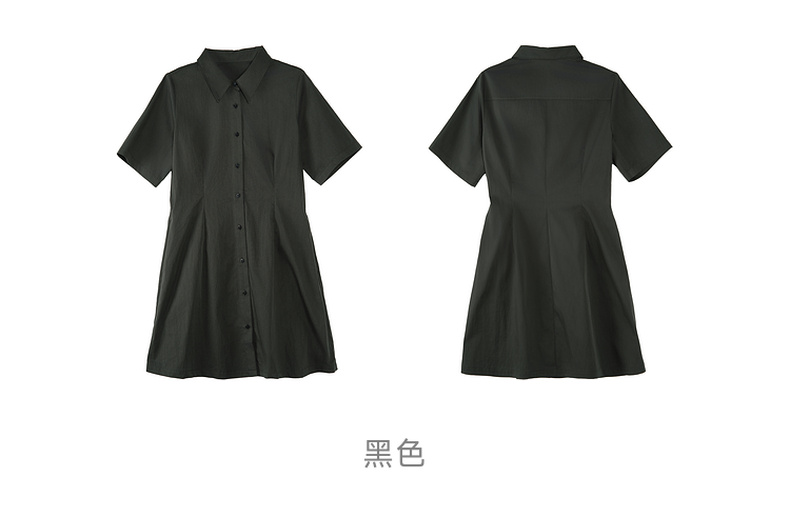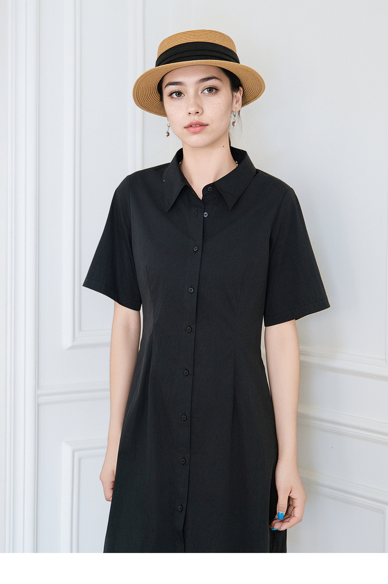 谜底纯色连衣裙短袖2025夏季新款通勤风衬衫式修身短裙257ML7836