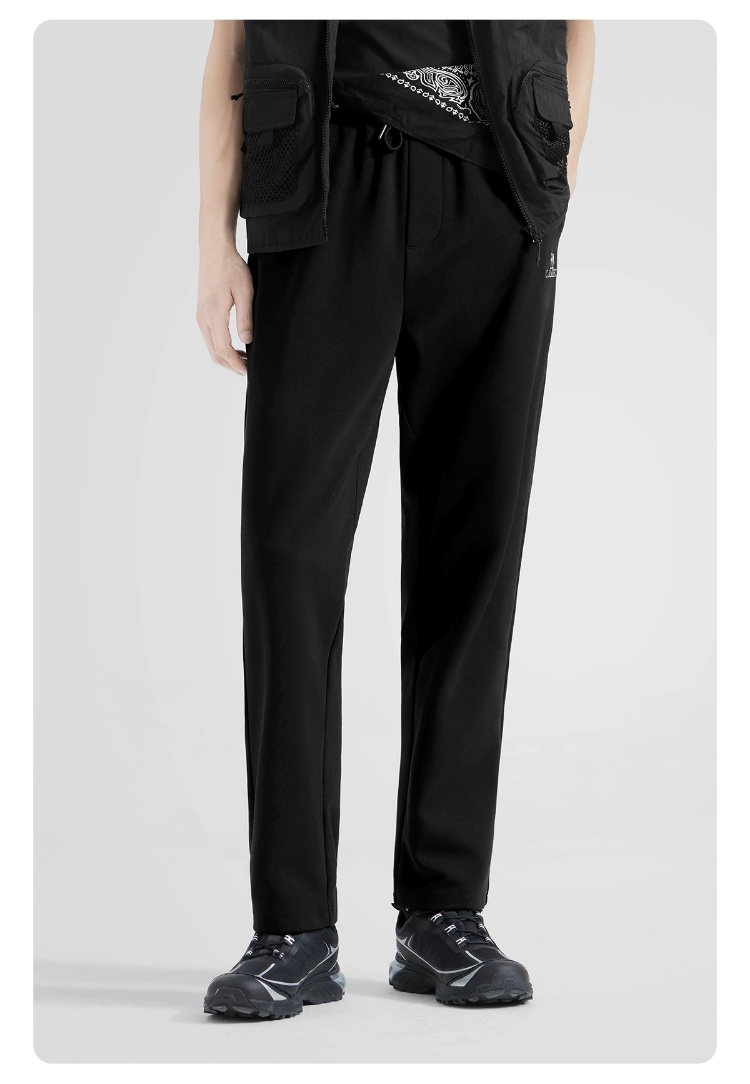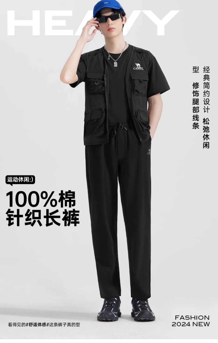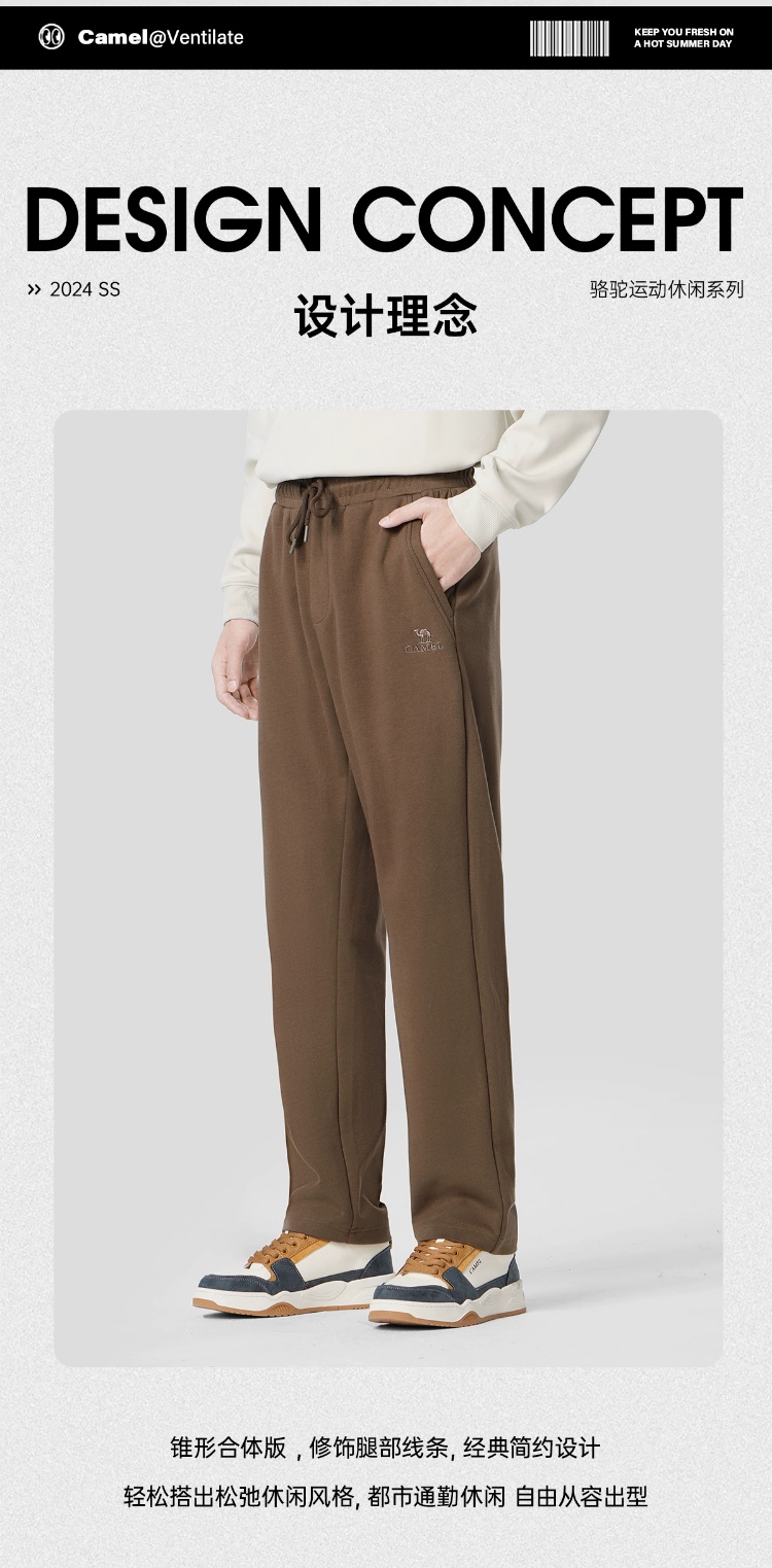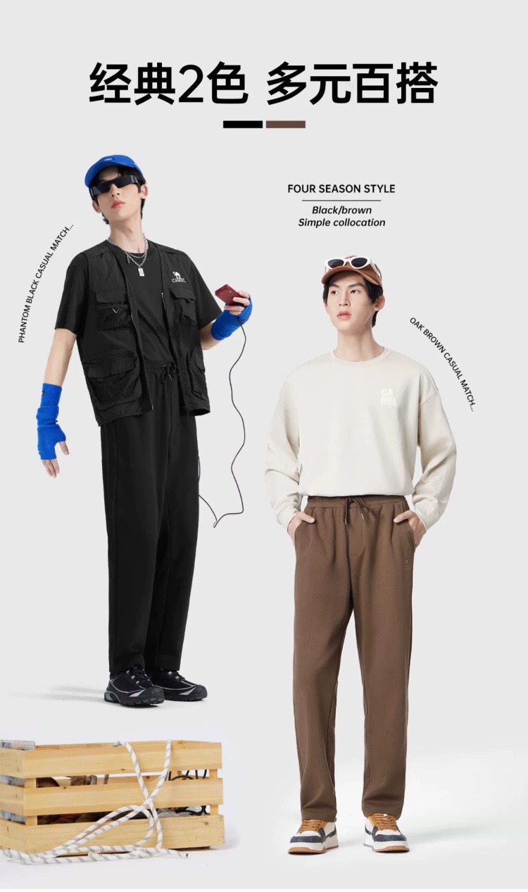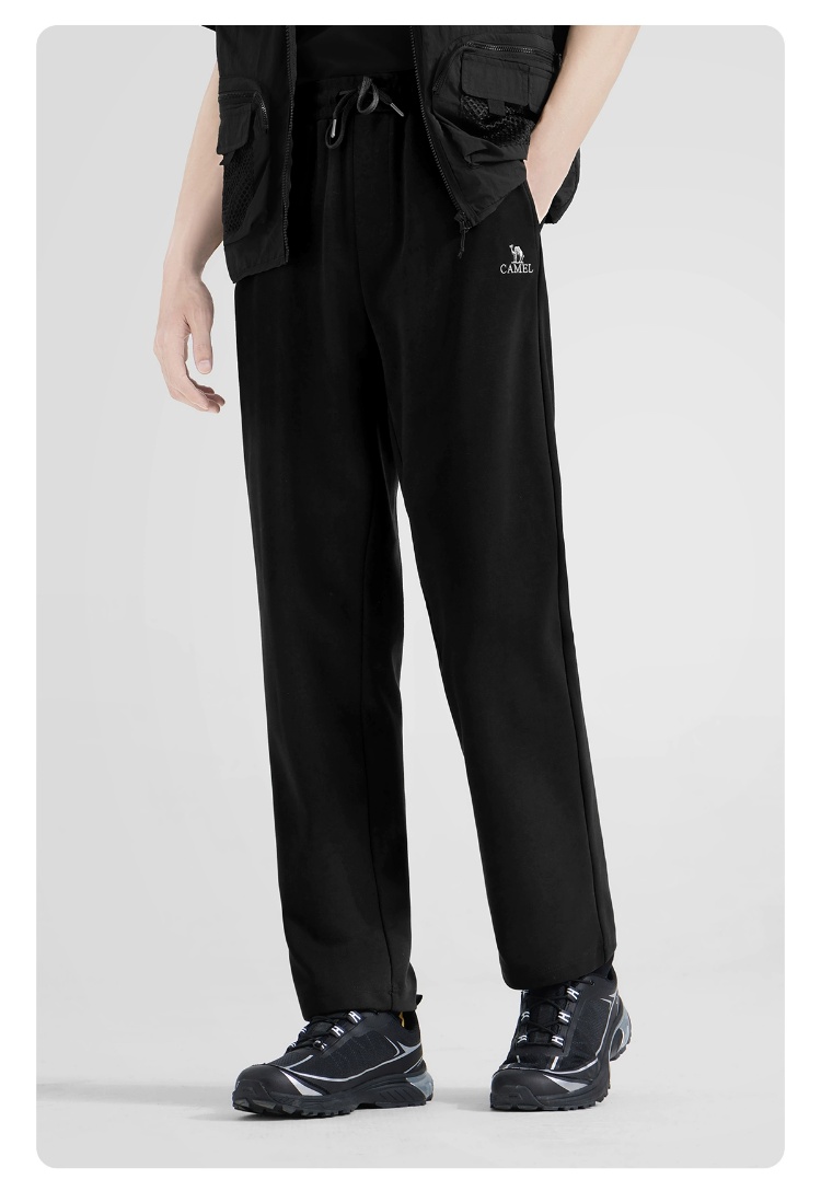 骆驼男装休闲针织裤男士新款秋季纯棉黑色直筒弹力运动长裤子 M14CAQR733