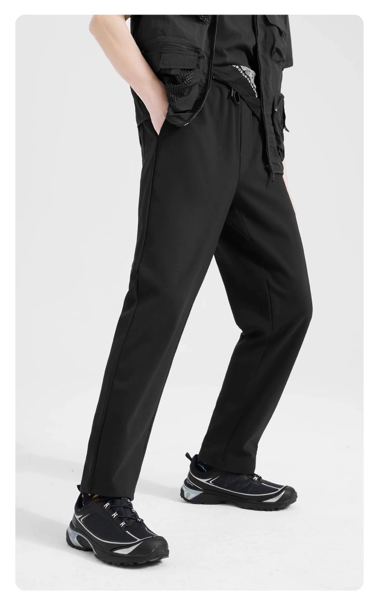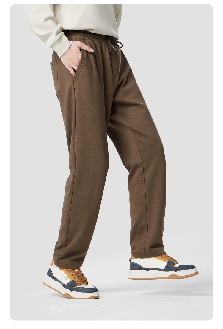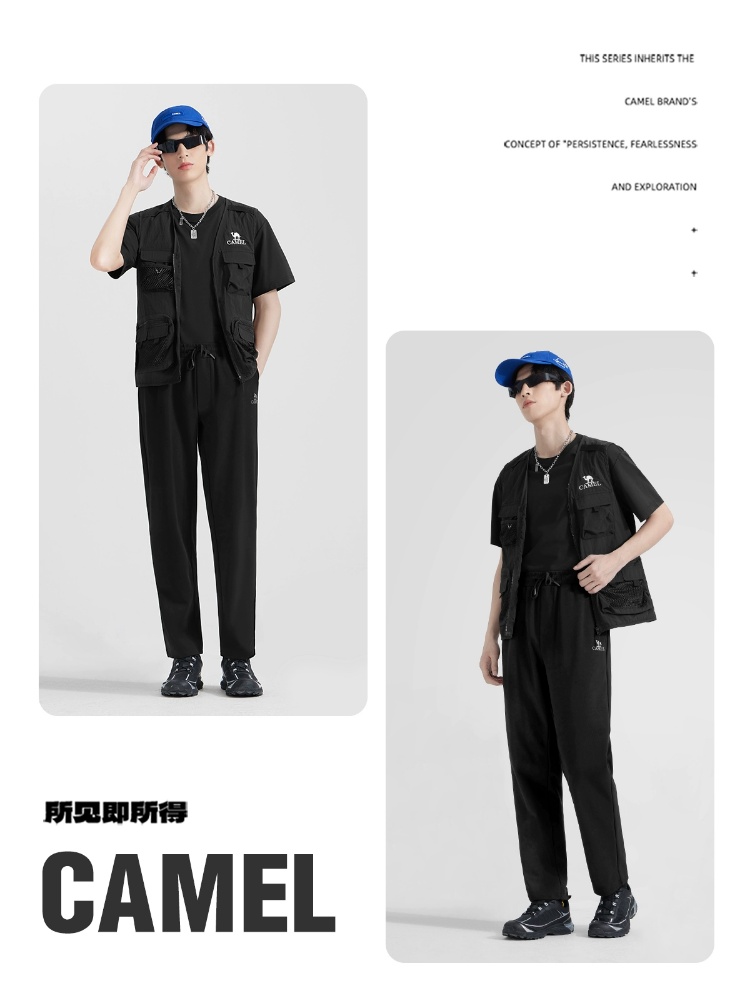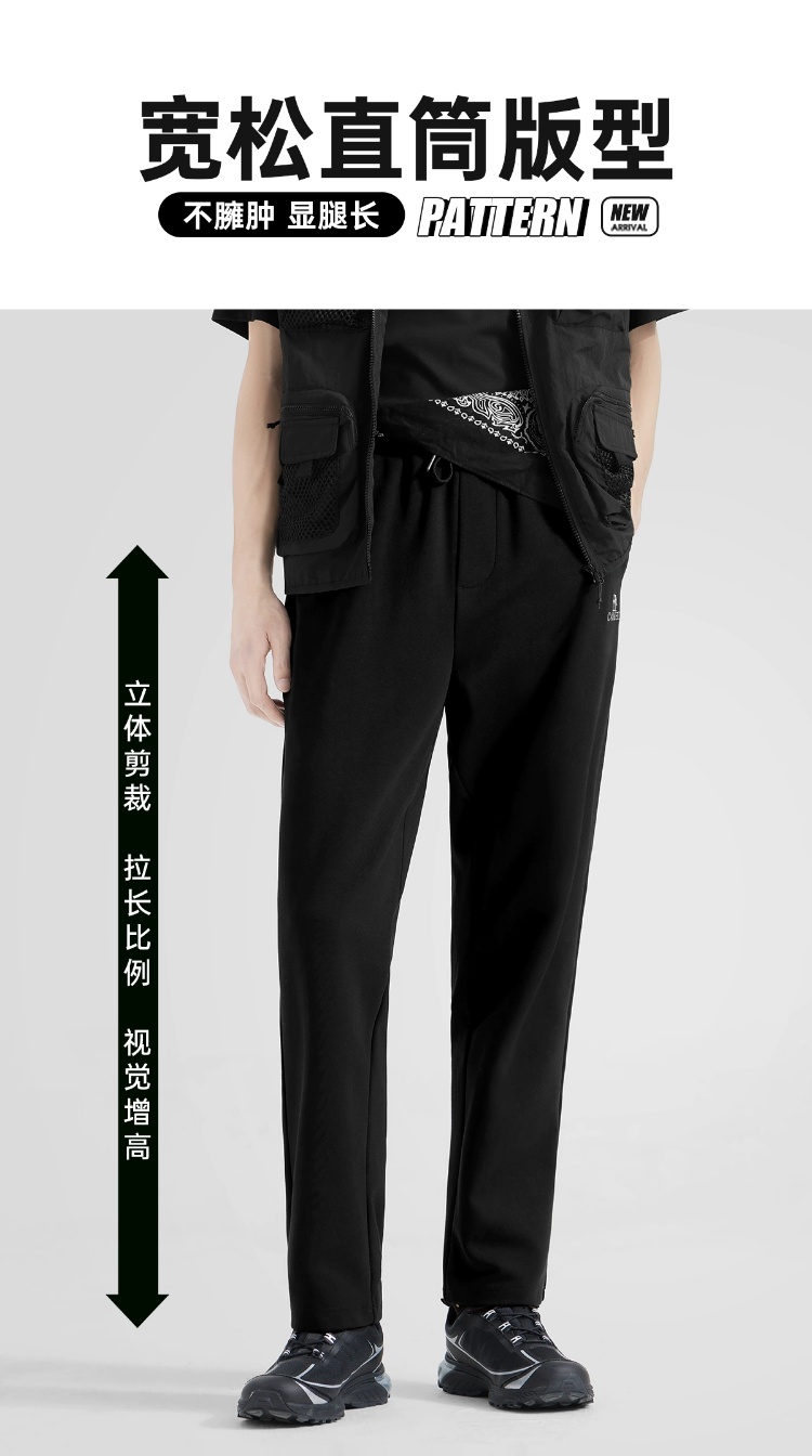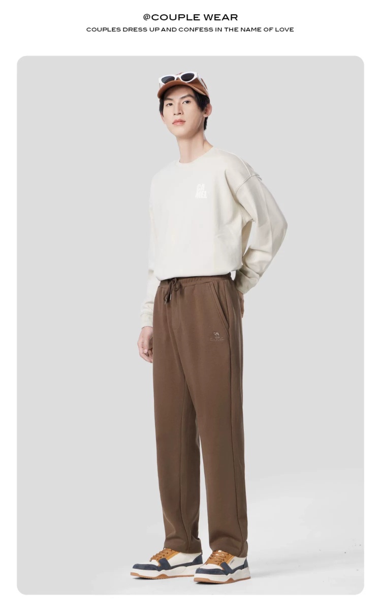 骆驼男装休闲针织裤男士新款秋季纯棉黑色直筒弹力运动长裤子 M14CAQR733