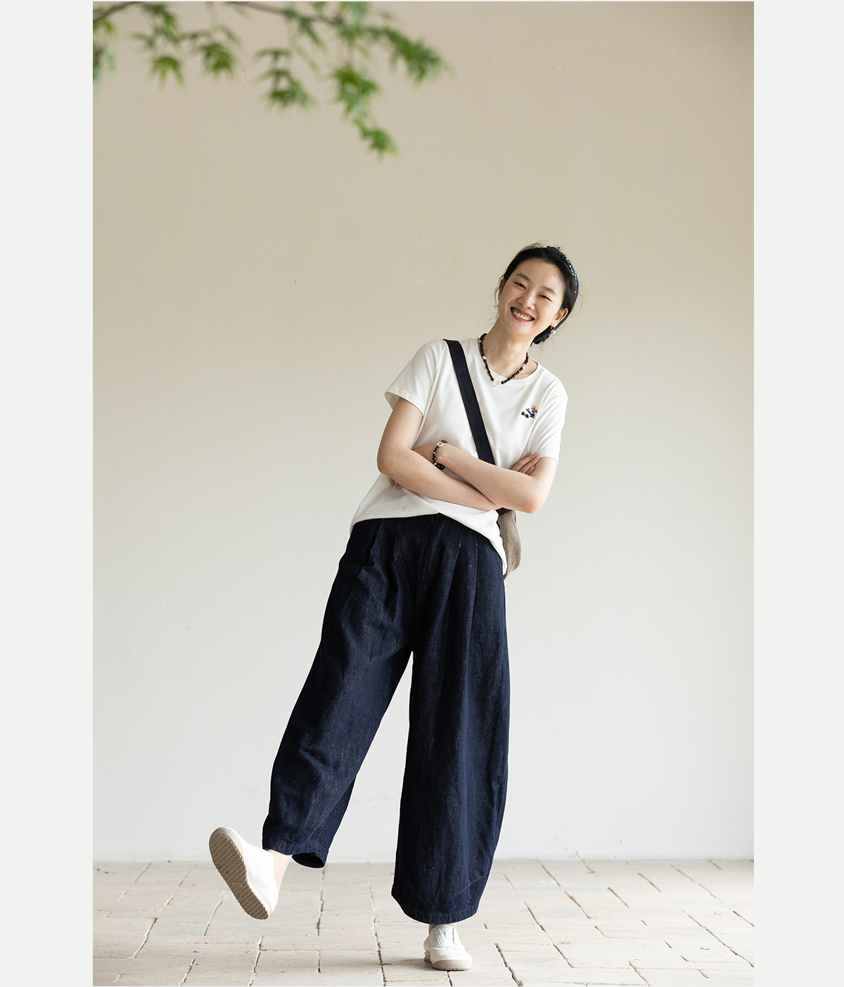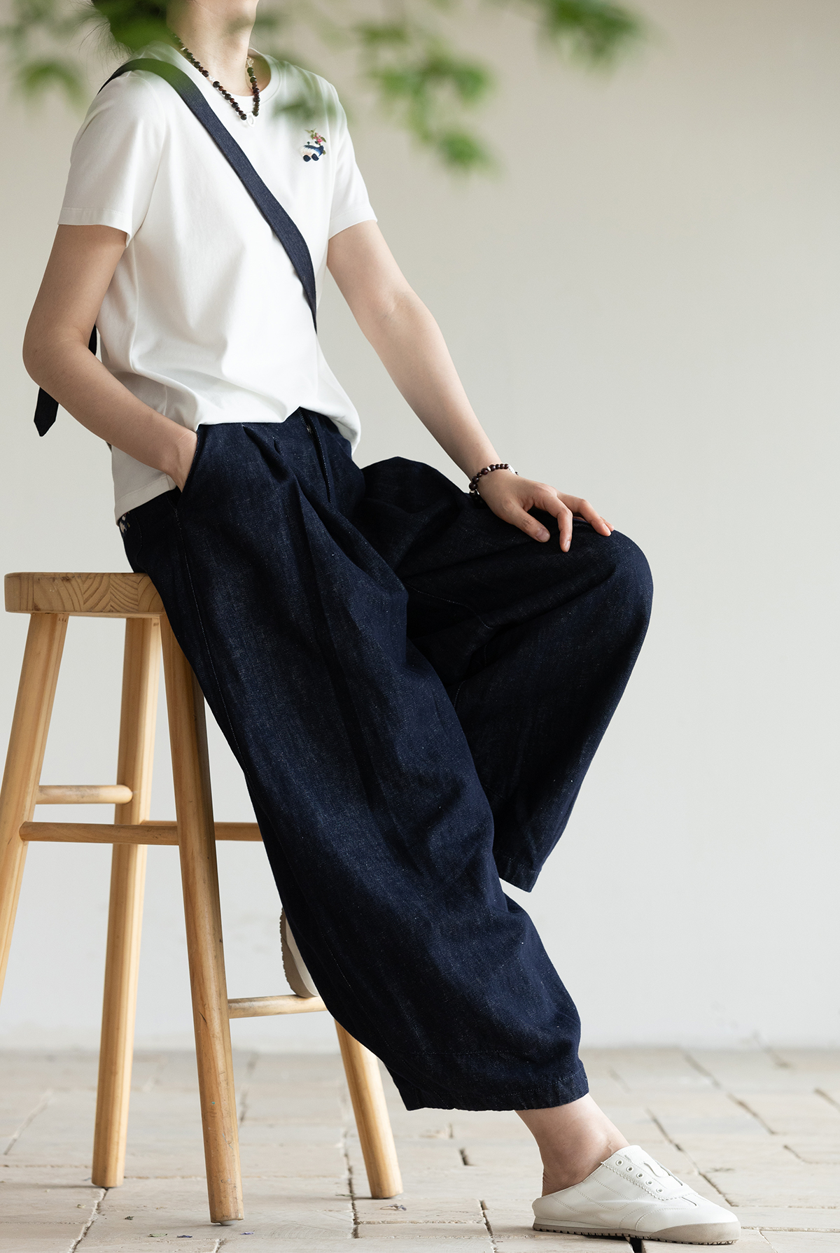 牧衣游原创 净色手工刺绣棉麻长裤 限量福利款 着竹不支持会员折