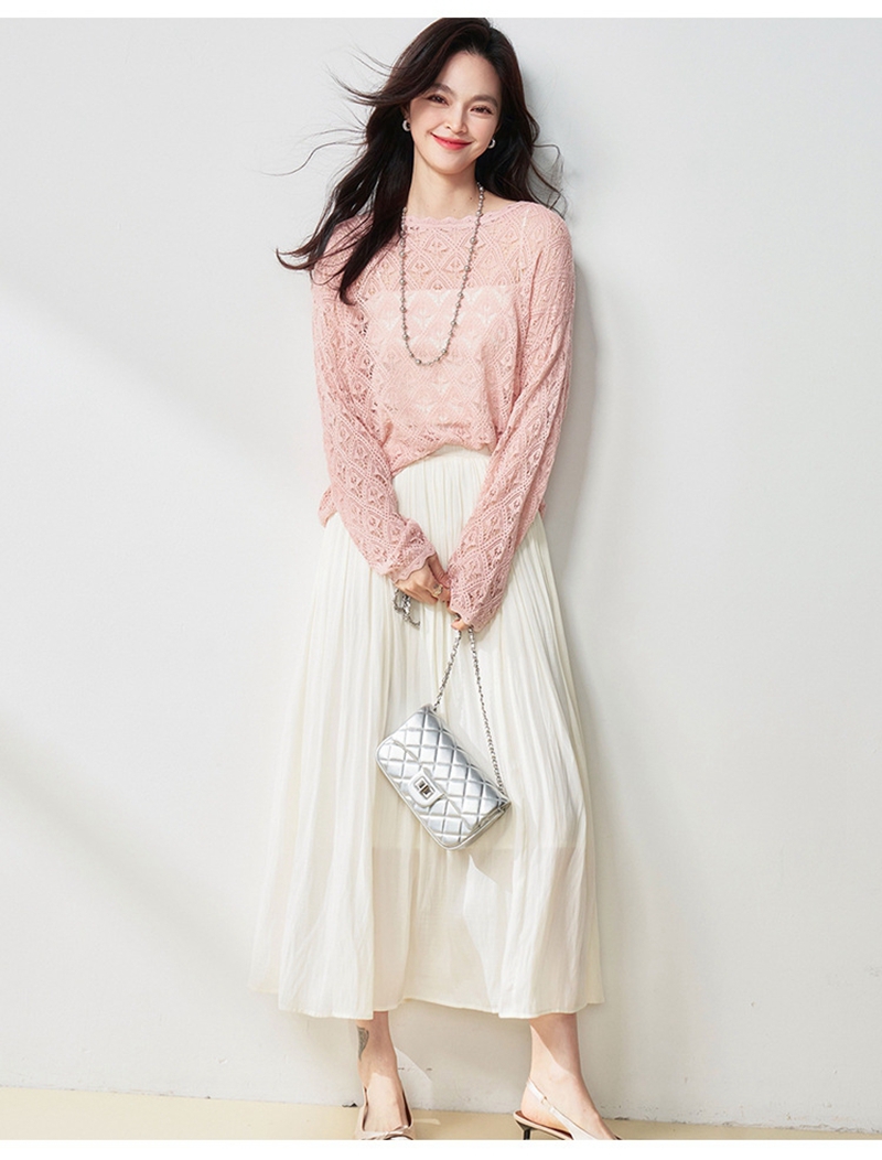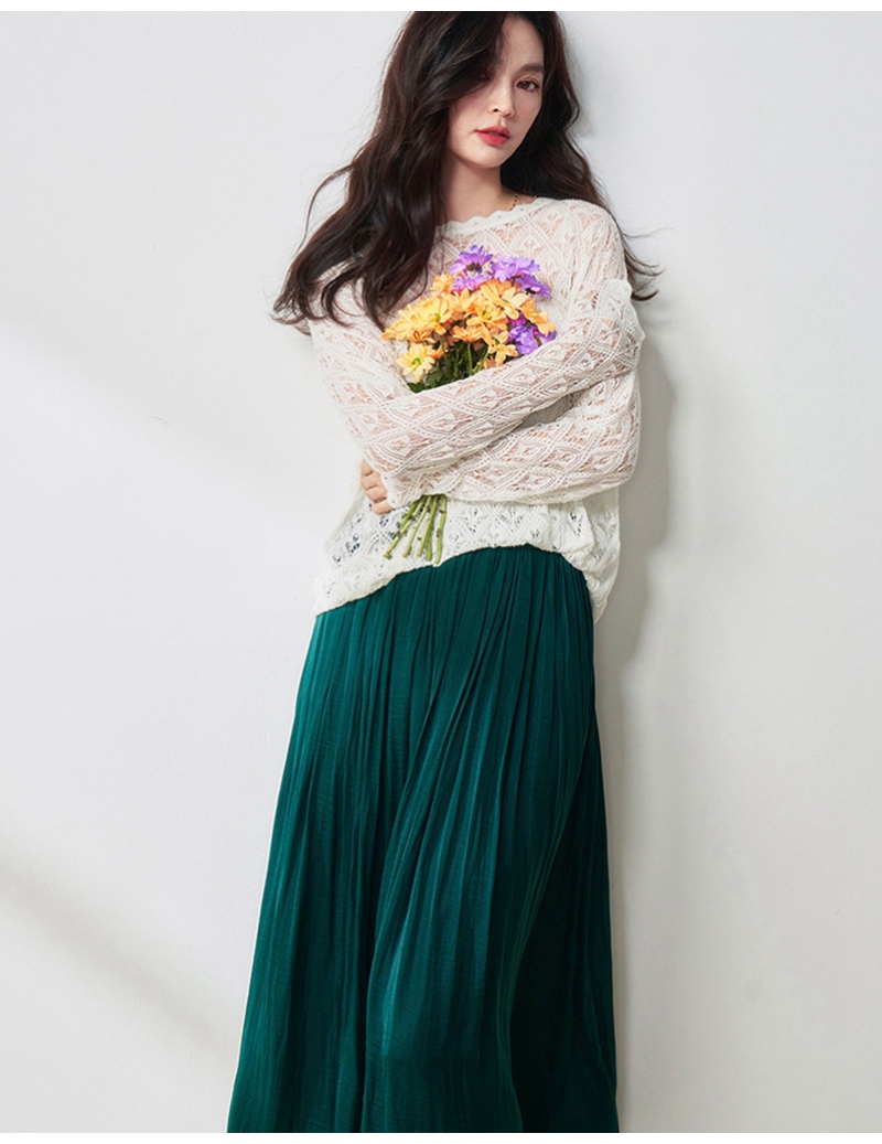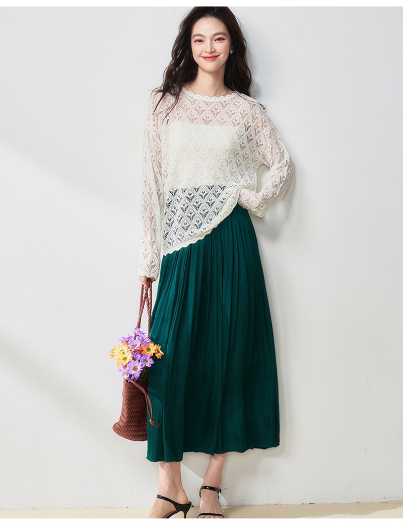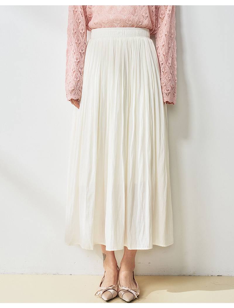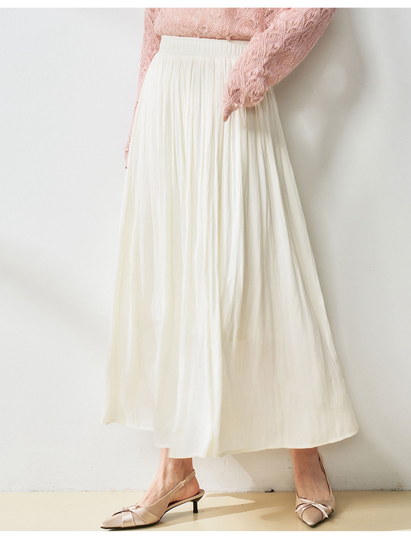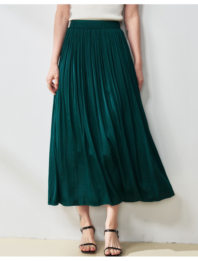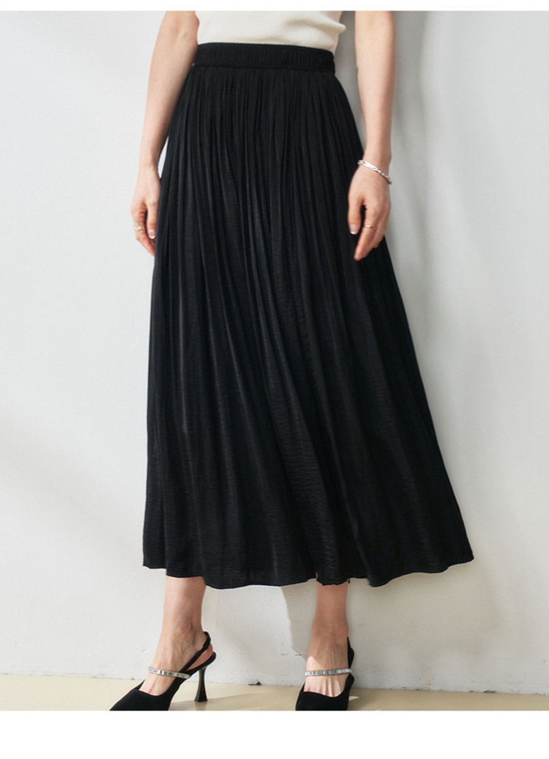 高腰松紧腰珠光丝质绸缎百褶大摆A字半身裙