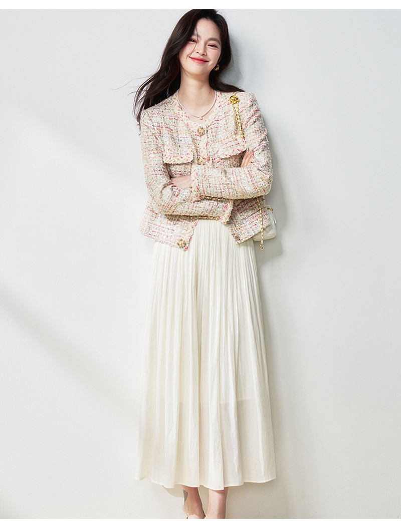 高腰松紧腰立体剪裁大摆百褶半身裙