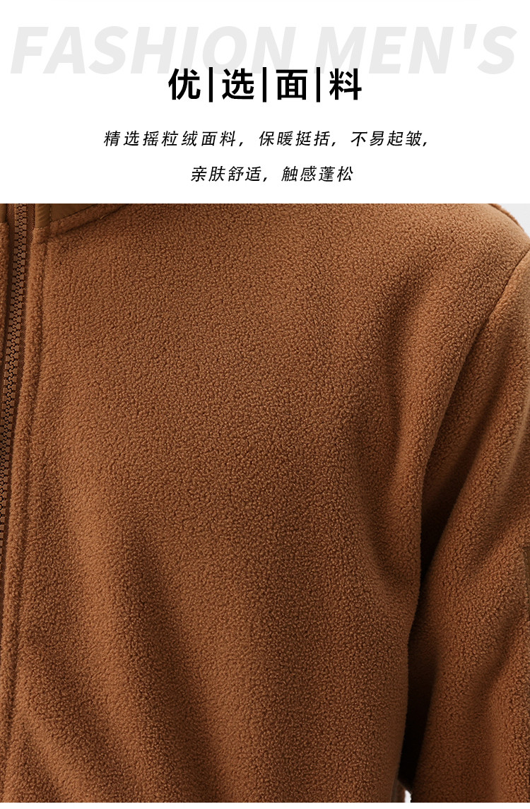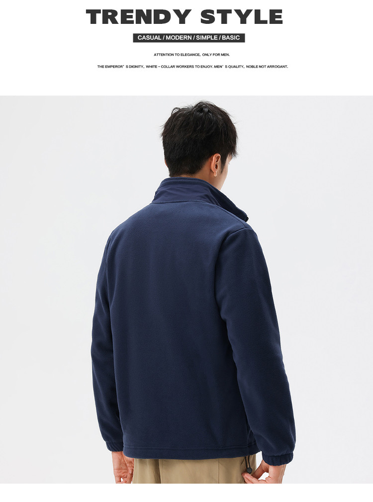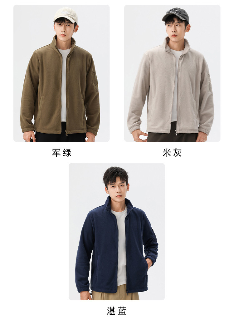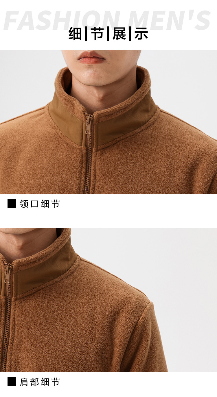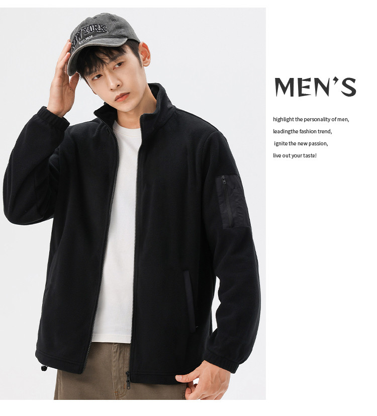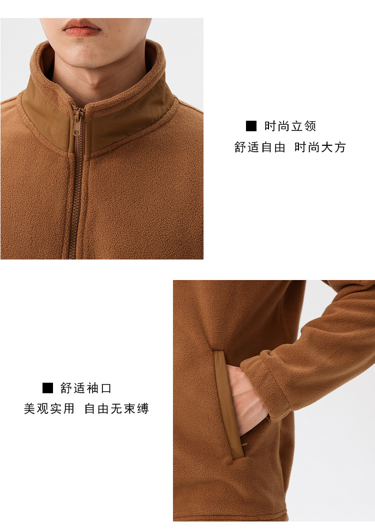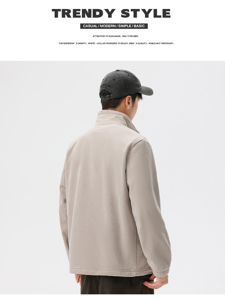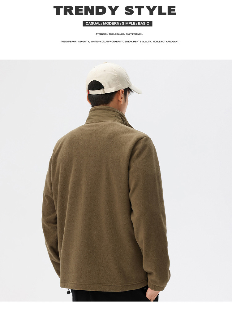 罗蒙秋冬时尚纯色男士摇粒绒外套保暖舒适外套男休闲基础百搭潮流男外套