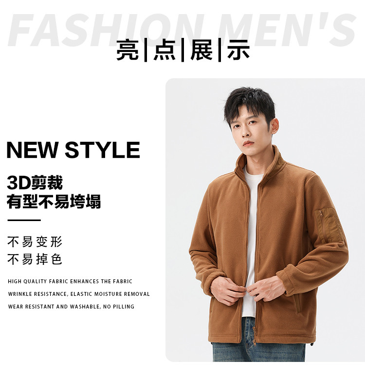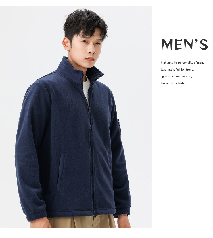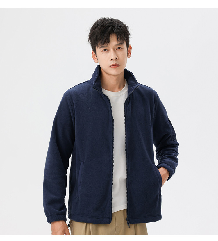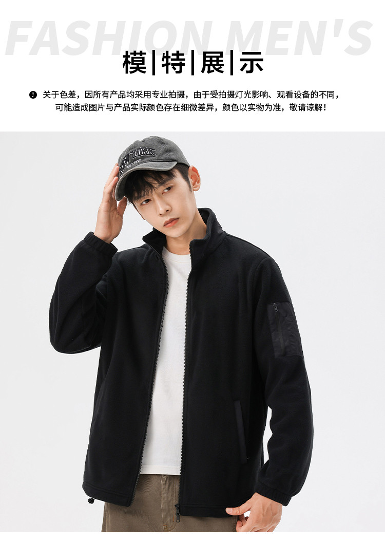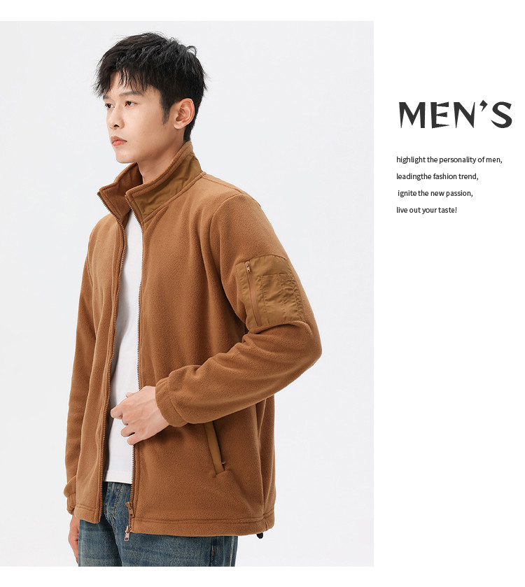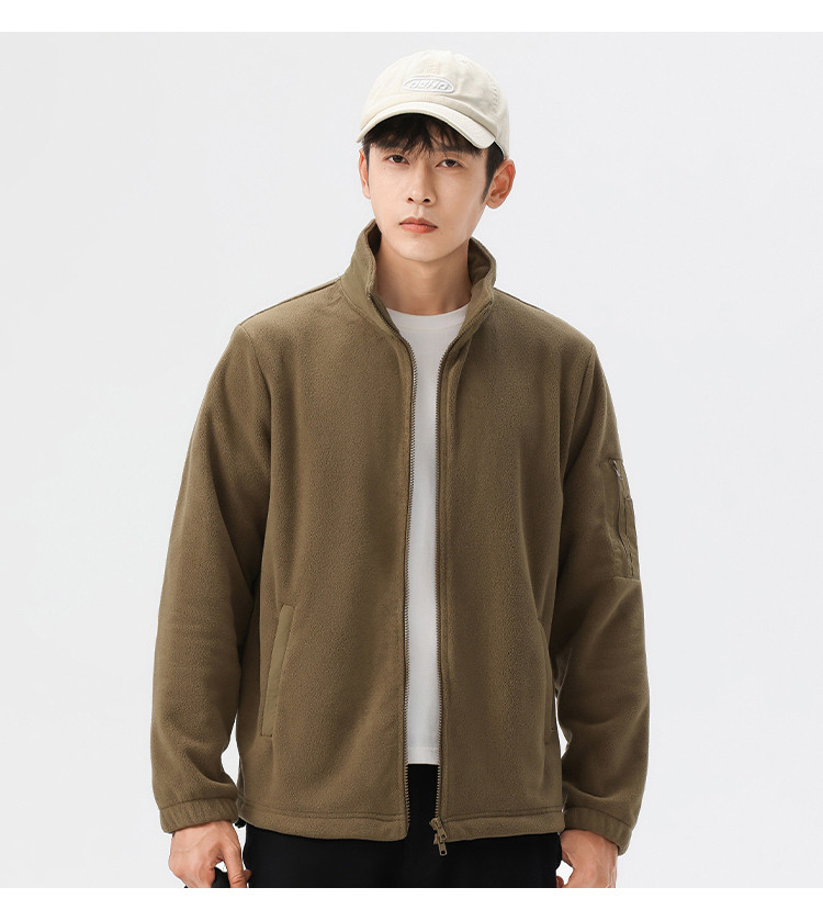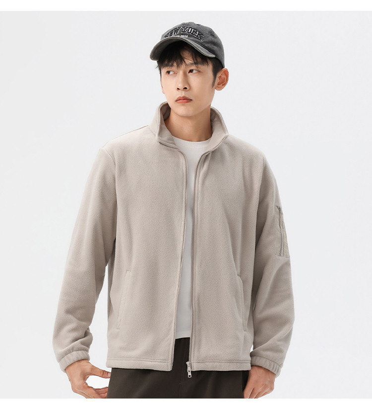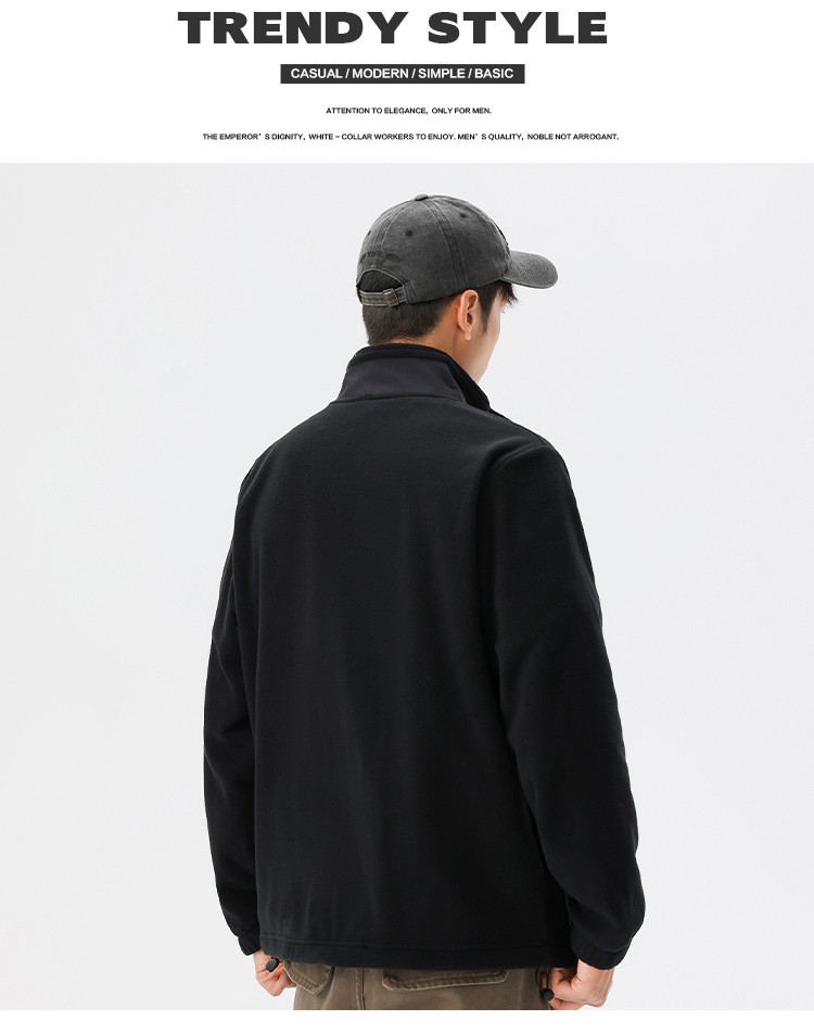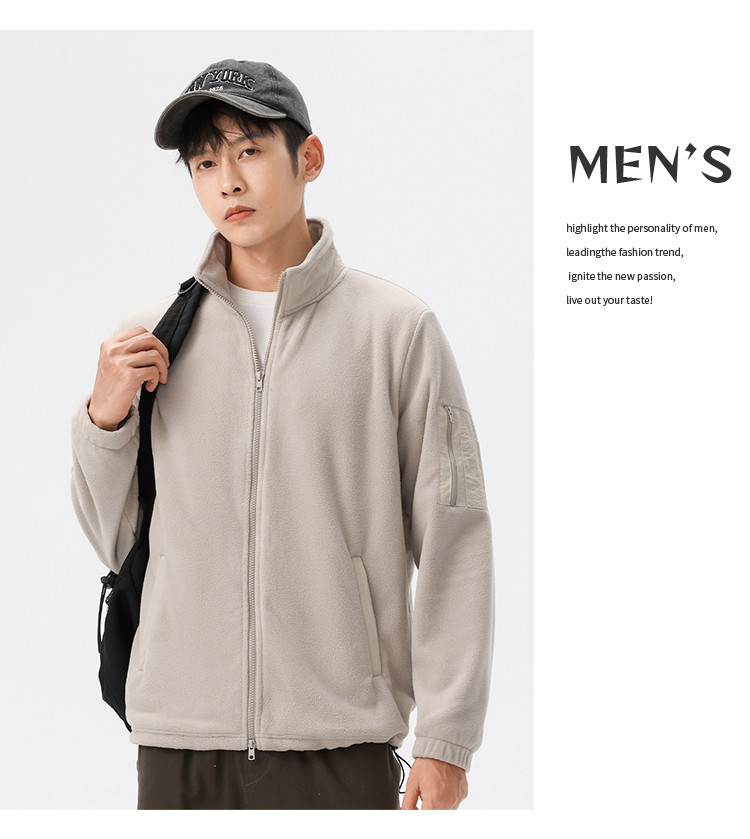 罗蒙秋冬时尚纯色男士摇粒绒外套保暖舒适外套男休闲基础百搭潮流男外套