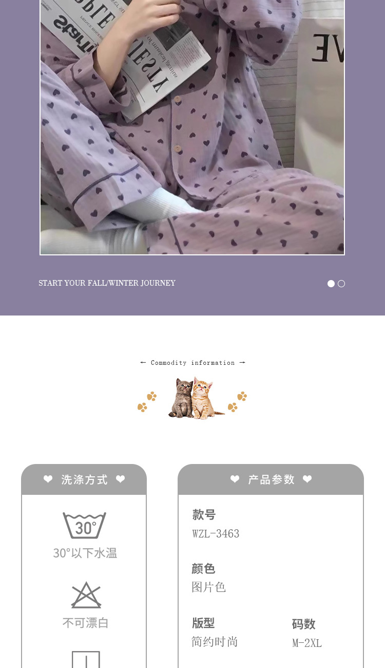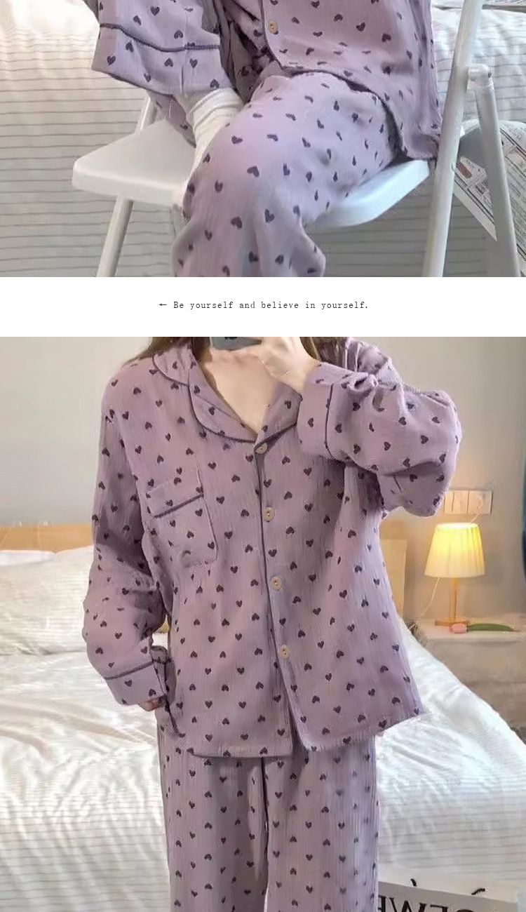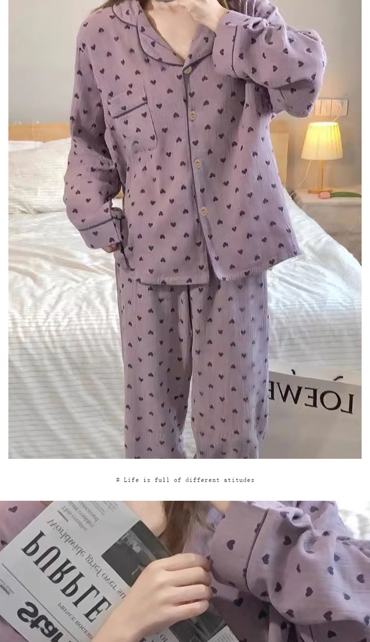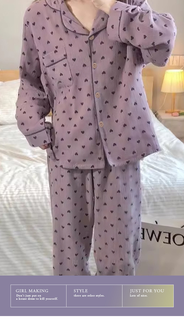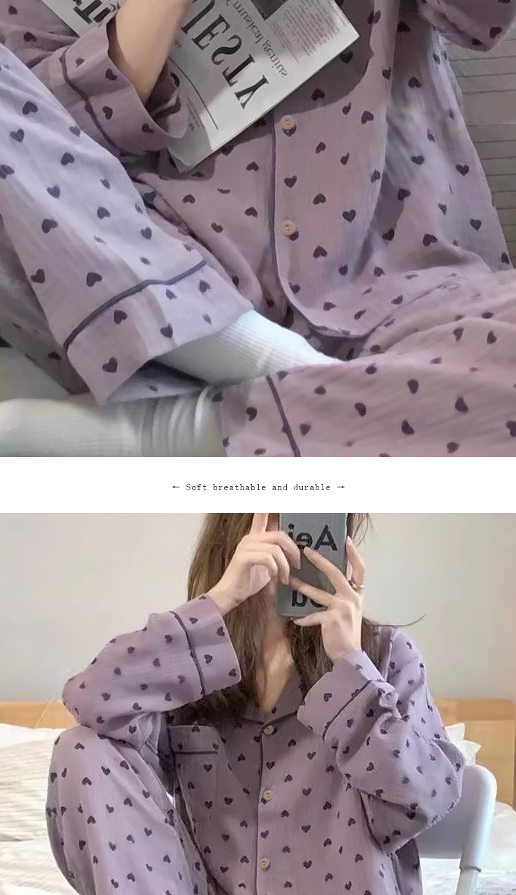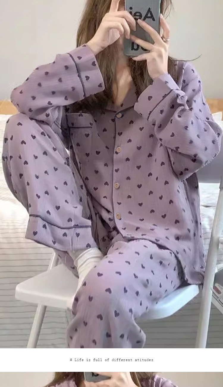 紫色爱心甜美风家居服春秋季高级感长袖睡衣女宿舍可外穿套装新款新品学生可爱家居服