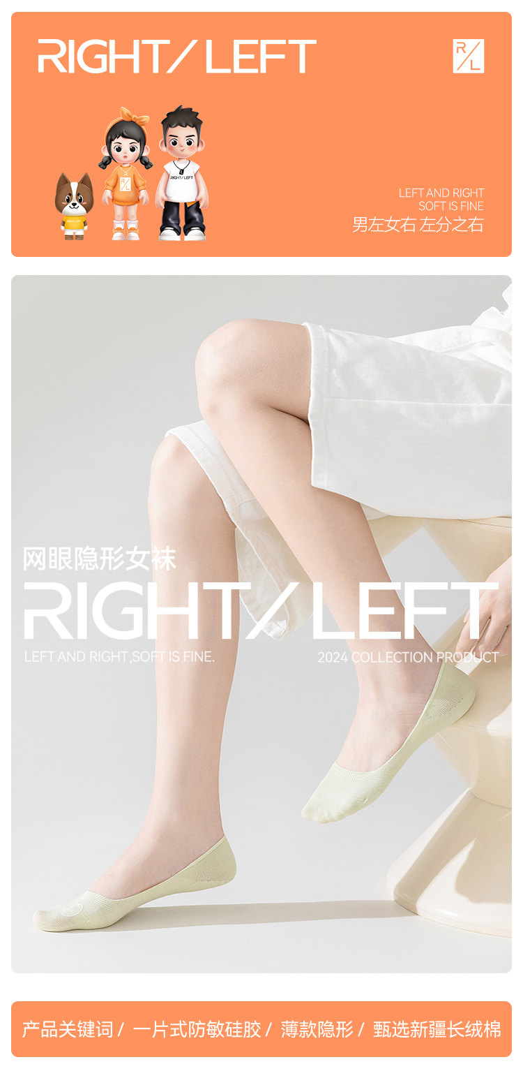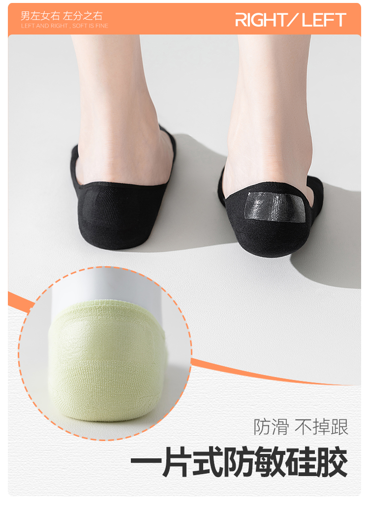 左分之右棉款隐形船袜女10A抗菌春夏不掉跟防滑浅口单鞋低帮短袜