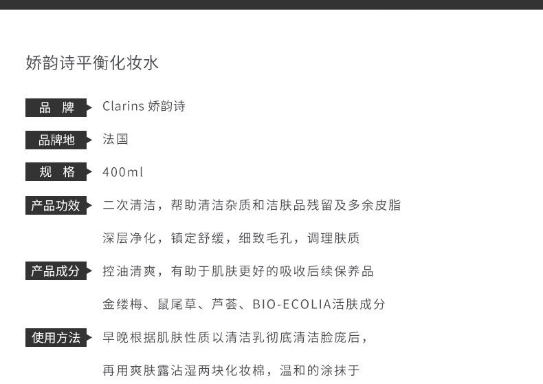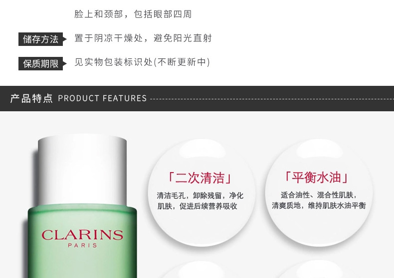 CLARINS 娇韵诗 平衡柔肤水绿水 混合性油性肌肤 200ml 法国