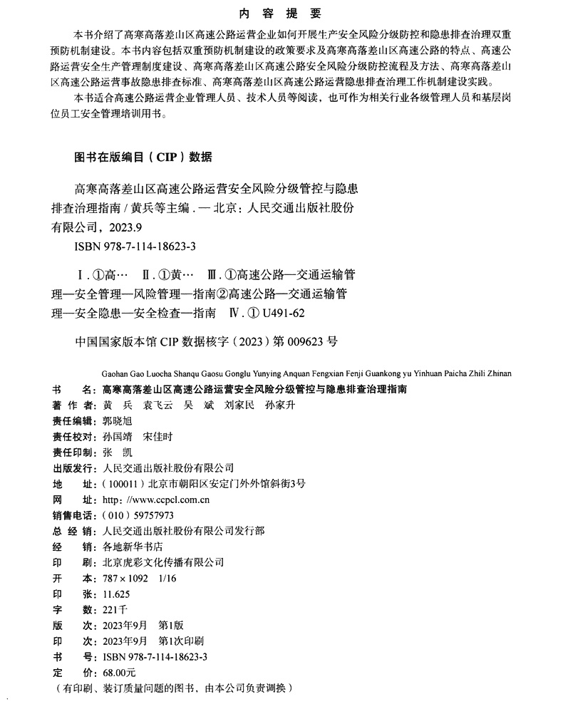 书名:高寒高落差山区高速公路运营安全风险分级管控与隐患排查治理指南