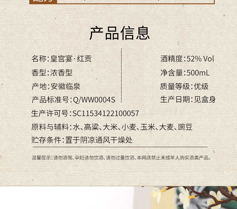 文王贡酒官方旗舰店 52°皇宫宴(红贡)500ml 高端商务 白酒礼盒