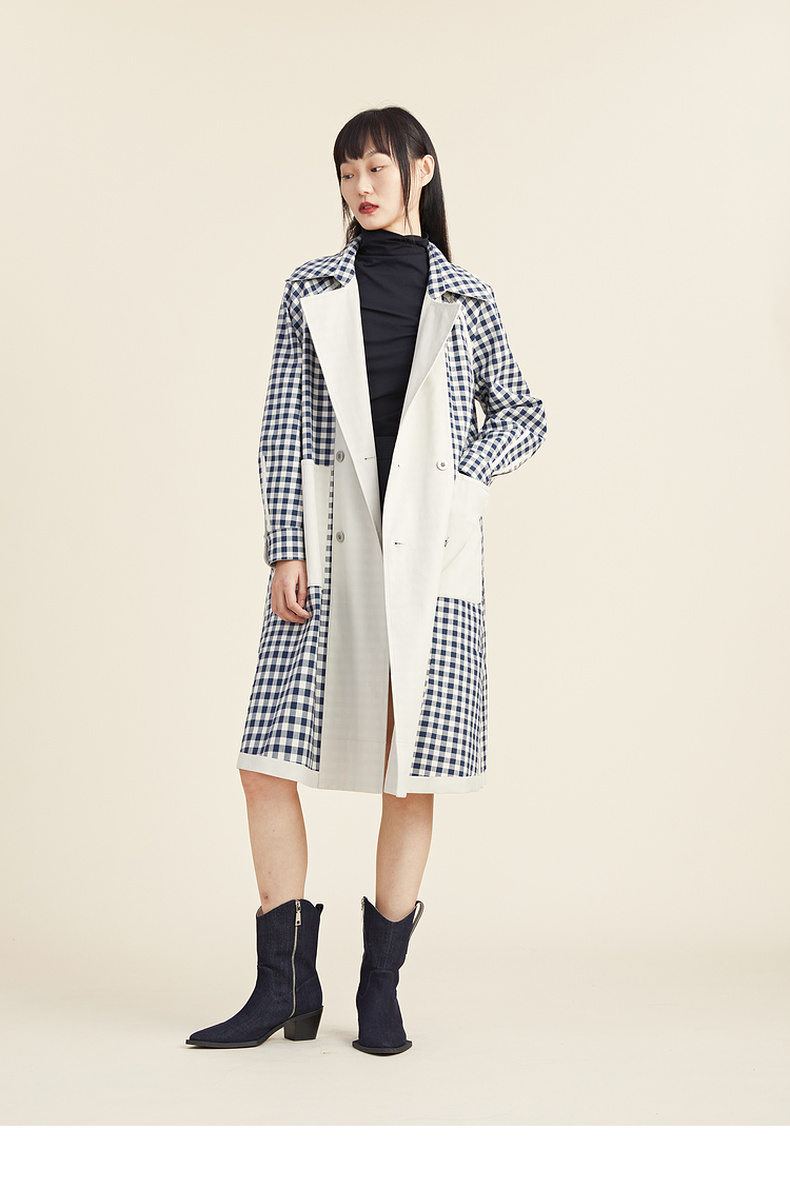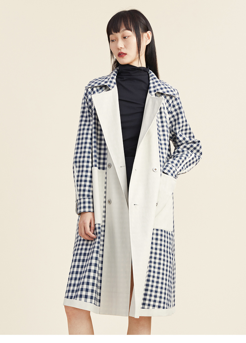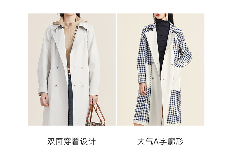 谜底风衣女2022秋款时尚个性中长款拼色两面穿风衣长袖223ME1029