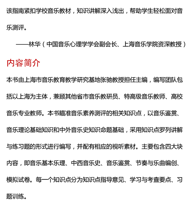 中小学生音乐素养测评指南 张驰主编 配套电子学习资源