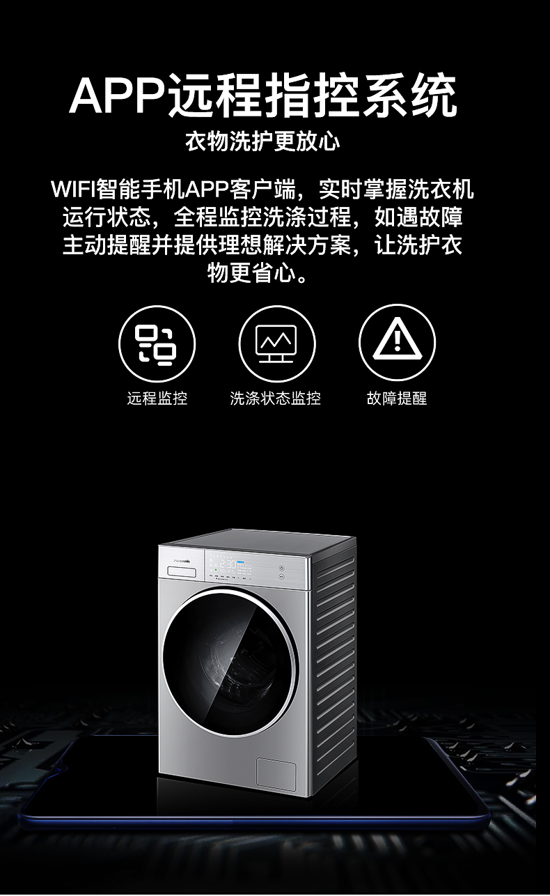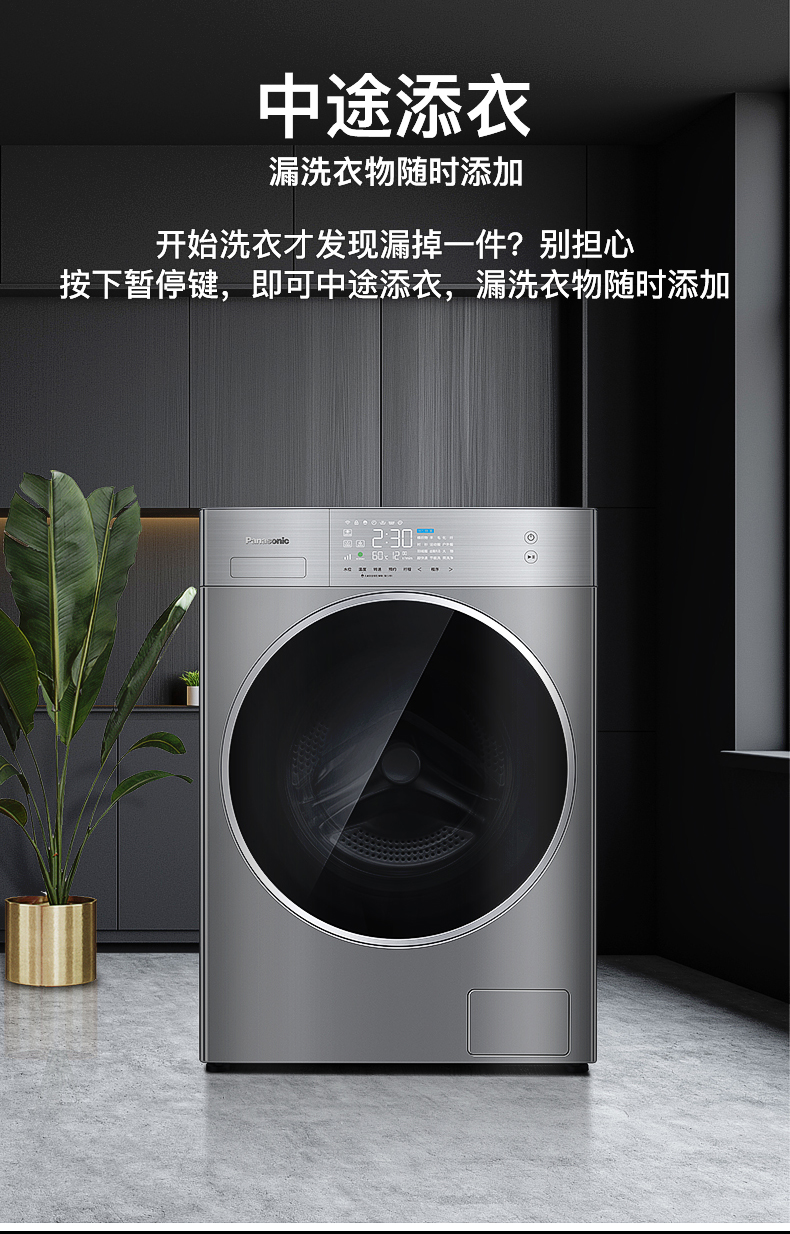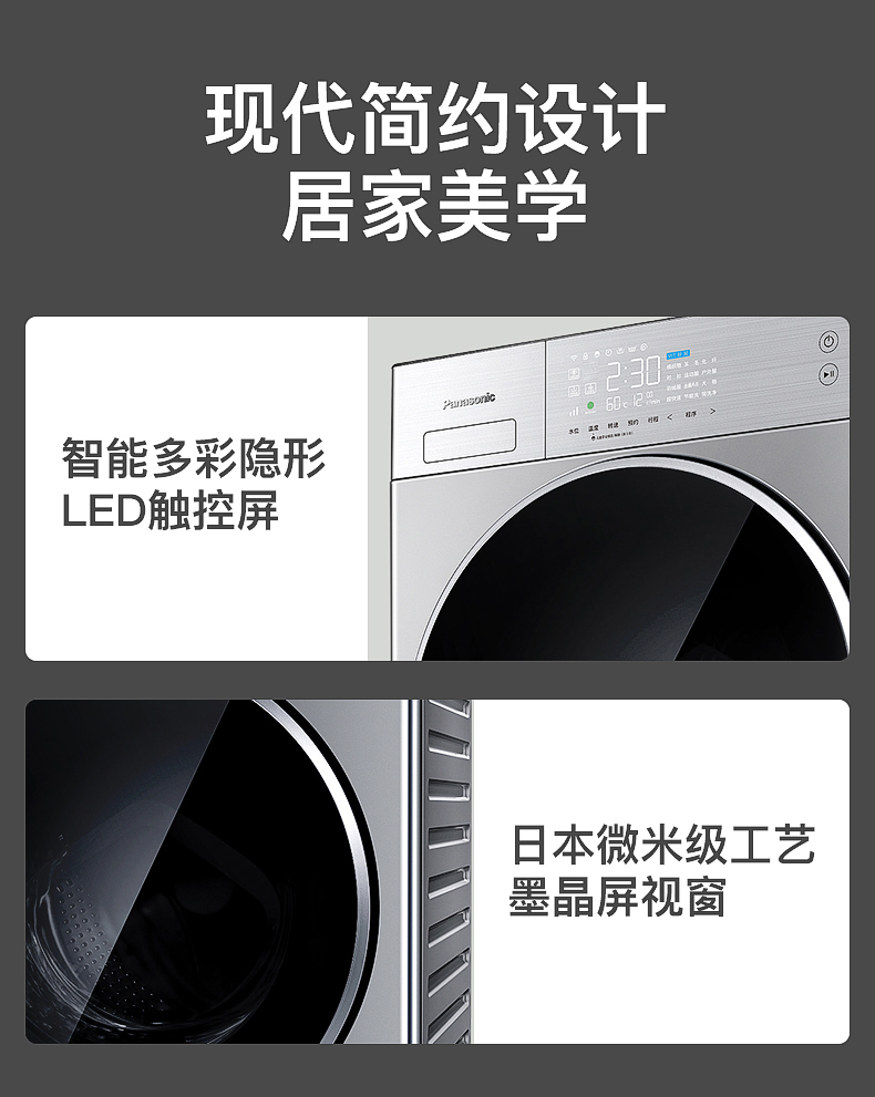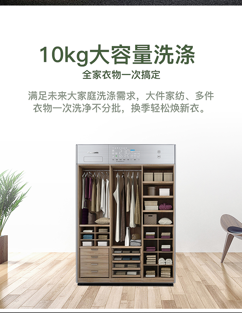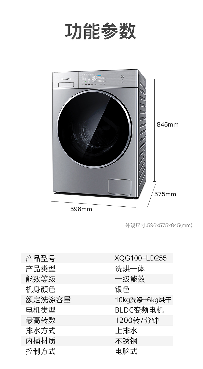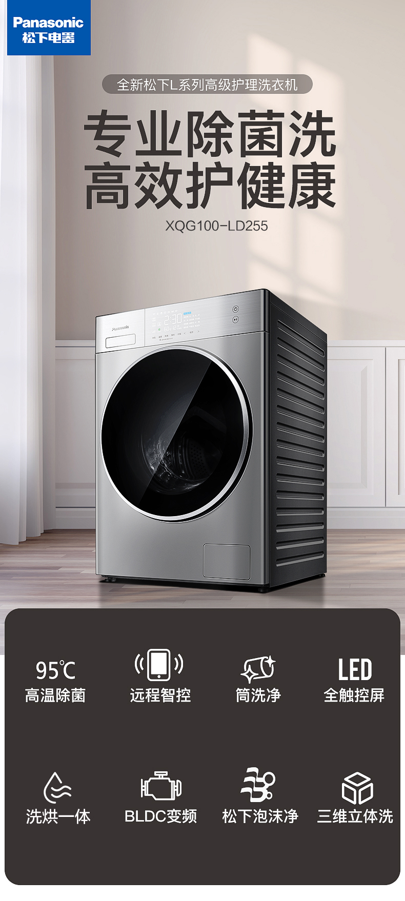 松下(Panasonic)滚筒洗衣机全自动 变频10kg洗烘一体机 95度高温除菌 APP远程指控 XQG100-LD255
