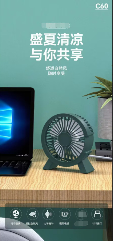 USB桌面小风扇迷你办公室风扇台式学生USB大风力清凉台式风扇