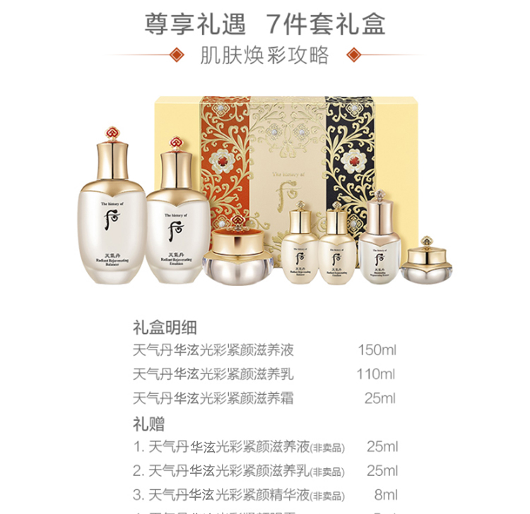 【跨境优选】Whoo后 天气丹花献光彩紧颜系列礼盒7件套