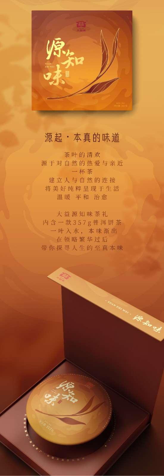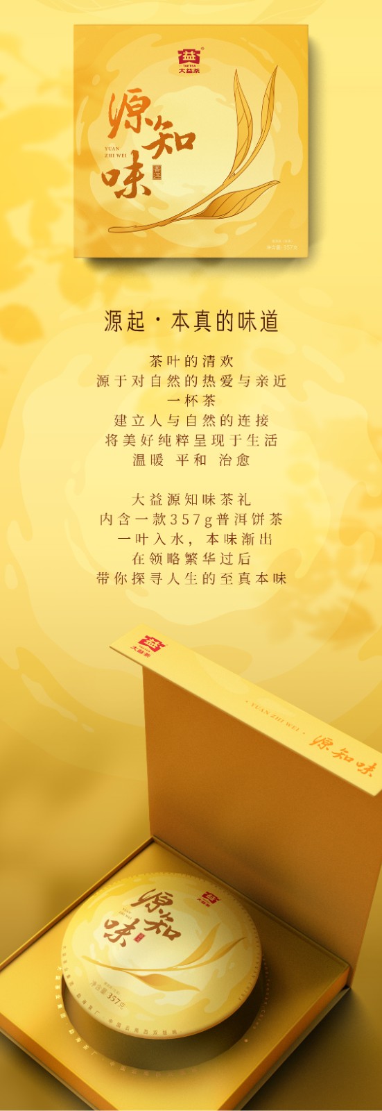 大益茶叶 普洱茶礼盒 源知味 茶叶礼盒 茶叶礼盒 生茶礼盒357g回甘蜜香持久/陈香浓郁滋味醇滑(SGJW)