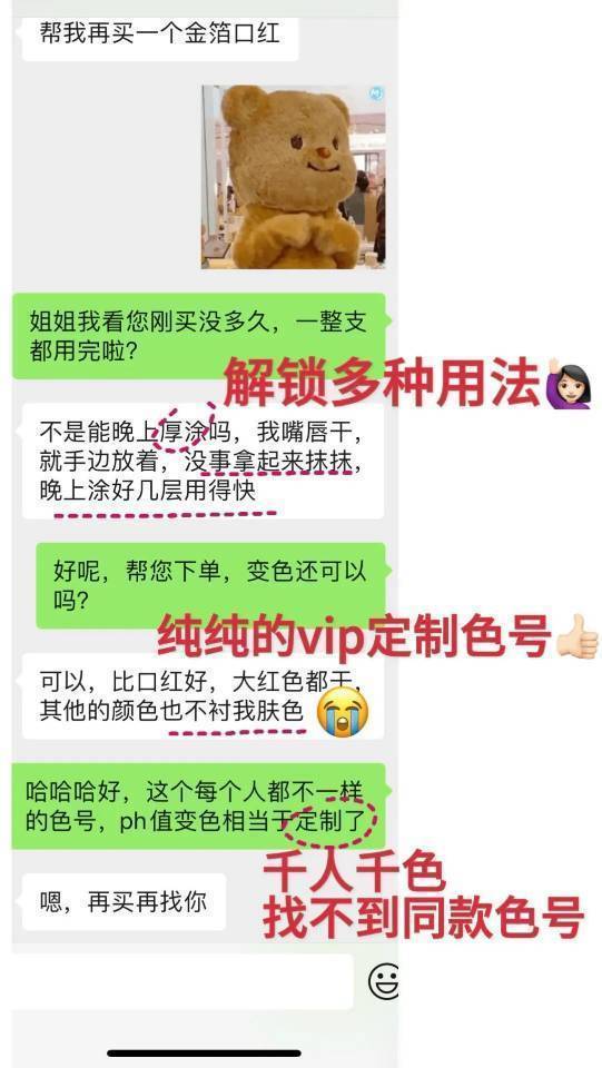 它会根据你唇部的PH值变成相对应的颜色,每个人涂都是不一样的颜色,所以是千人千色!!