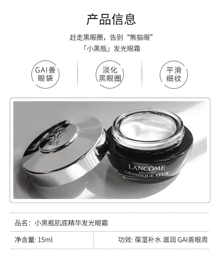 【LANCOME兰蔻新版小黑瓶发光眼霜15ml】 熬夜党必备 新肌底精华小黑瓶眼霜